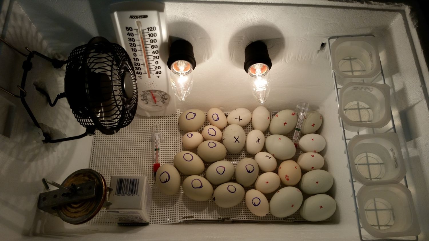 I also attached the thermostat permanently to the wall, which freed up more space and made it safer for the eggs.