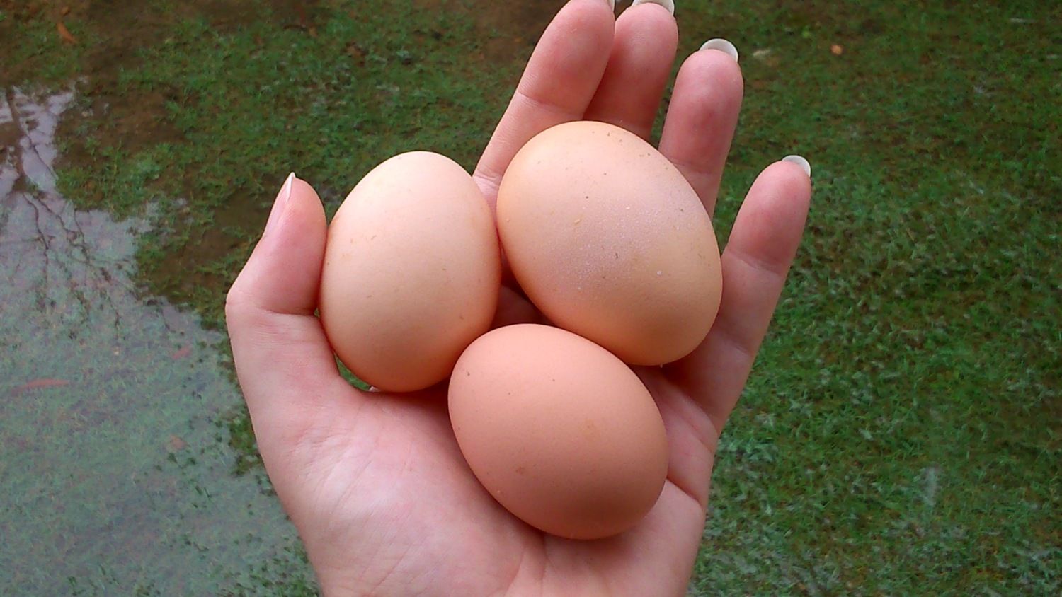 The chooks are all out now grazing for the first time in a couple of days. Apart from a sneeze from Hedwig that I'll keep an eye on, they seem fine and kept laying like champs. Three eggs for me this morning, one of which is a 74g whopper from Stampy (the ISA brown).