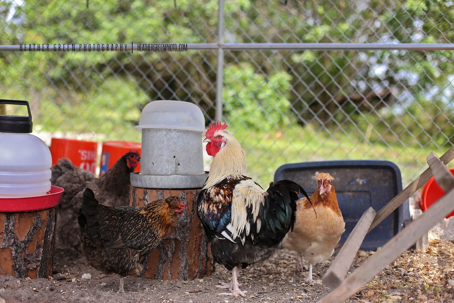 This is him with the Sulmtaler hen on the right and my other two hens, an EE cross and a blue cochin. You can see how HUGE he is at this young age. And he's getting prettier by the day.