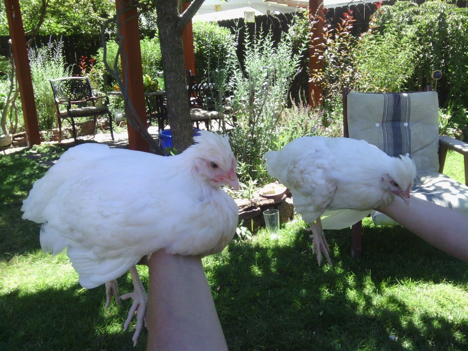 My sister received a trio of white Sulmtalers this spring. Unfortunately she lost the cockerel a couple of weeks ago.
