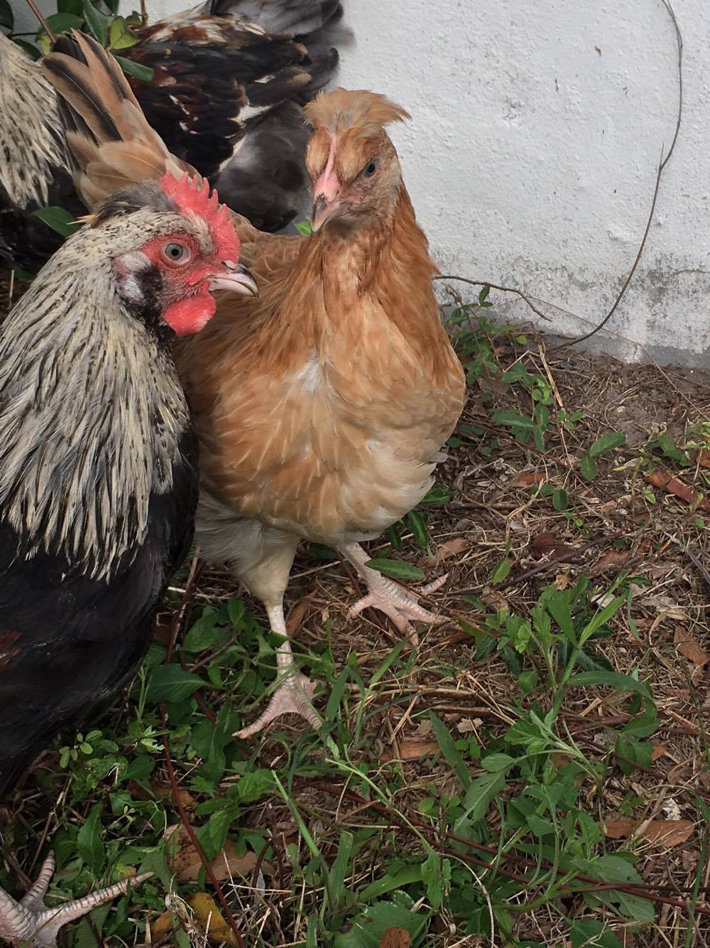 Here are some older photos of the flock, the younger pullet is Silver Wheaten and the older is Wheaten;