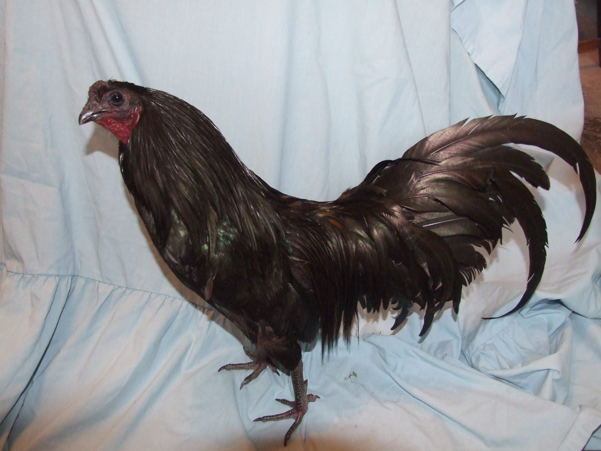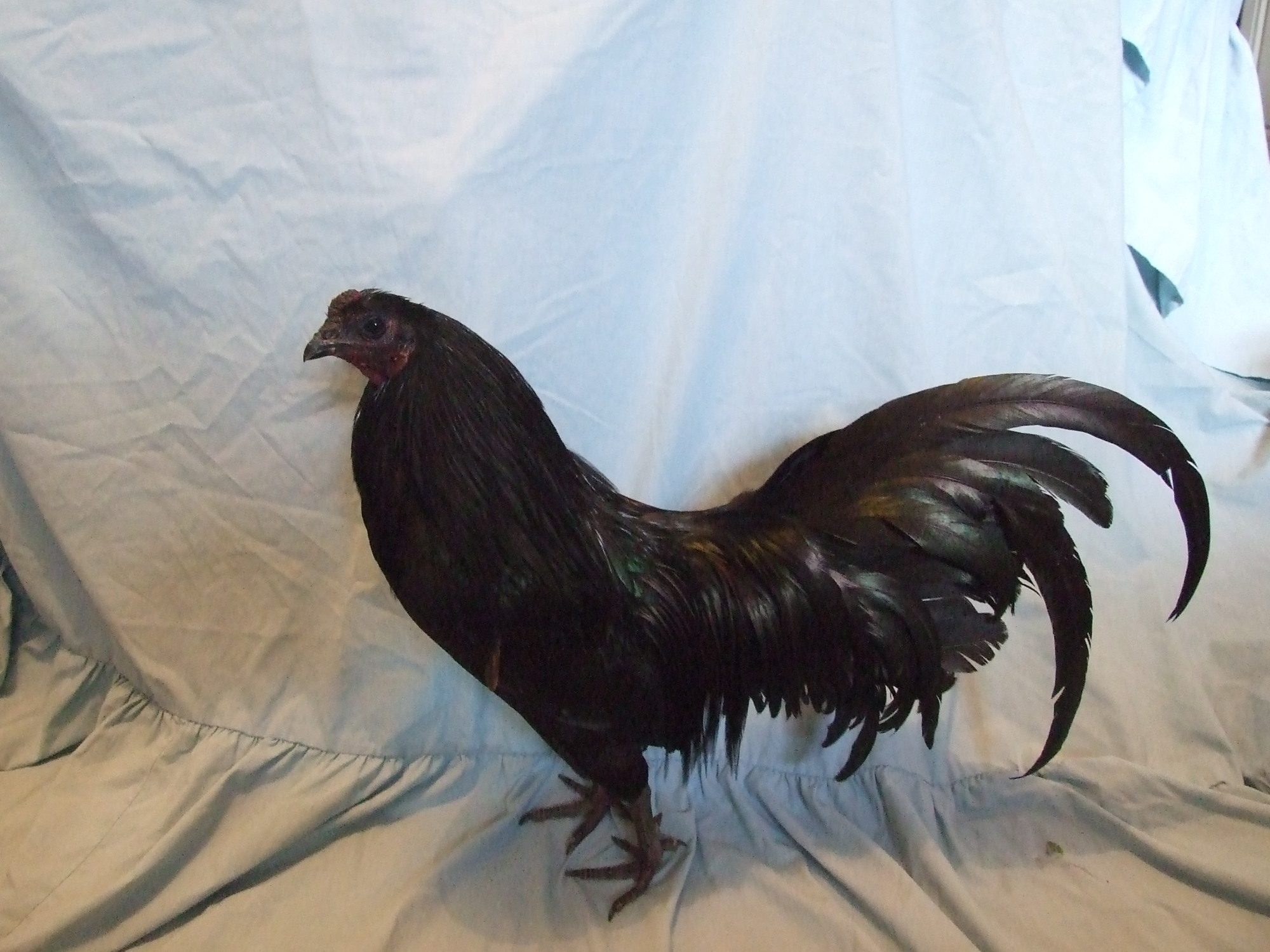 I always suggest a roosters tail should be about 15 degrees when he is young, then when his tail comes in, it weighs it down to about horizontal.My birthday is coming up in July and I'm getting British poultry standards 6th edition, it has pretty much every standard of all breeds in it. And since sids parents are from a English strain ill be breeding to the English standard. When I get the book I will post the British standard anyway.