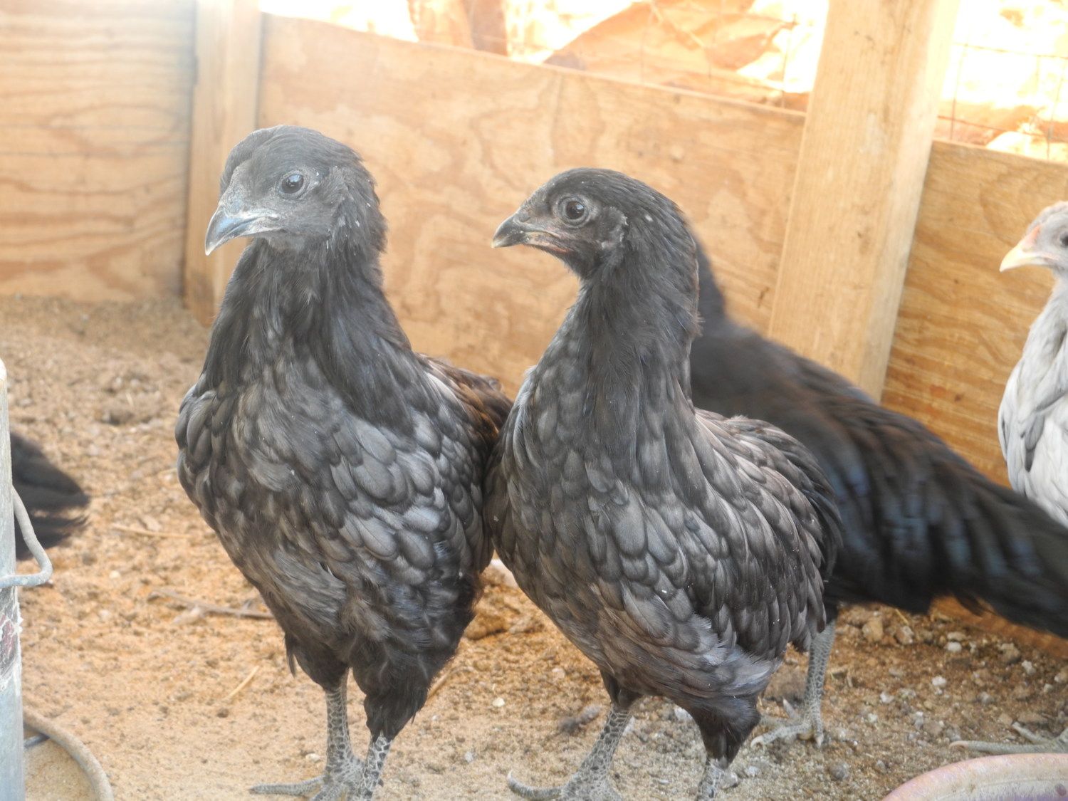 Here are some blue cockerels I hatched out. I feel like this guys are coming along nicely with the lacing, much better than last years lacing. I have Toms lines, James lines, And I got a rooster from sherry parkers line's in February of last year I do believe. I am still working on my own line. The two cockerels are a mix of sherry's line and Tom's line.