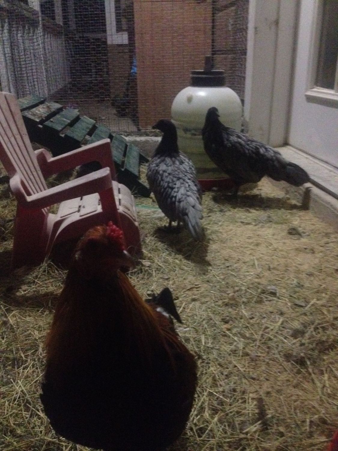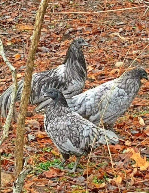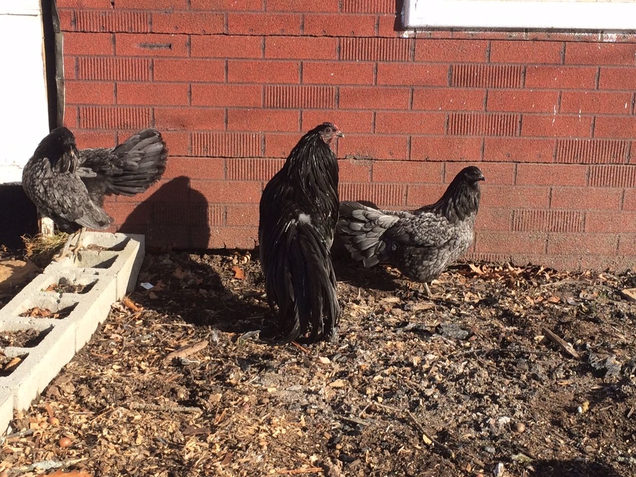 They are so beautiful!!! I have two blue pullets but they seem to be a bit darker than yours. Your rooster is simply beautiful!!! I was thinking of getting some black sumatras, but after seeing your roo's picture I think I might get blues, so I can have a mix of blacks, blues and splashes-but will hope for a roo as pretty as your little guy!