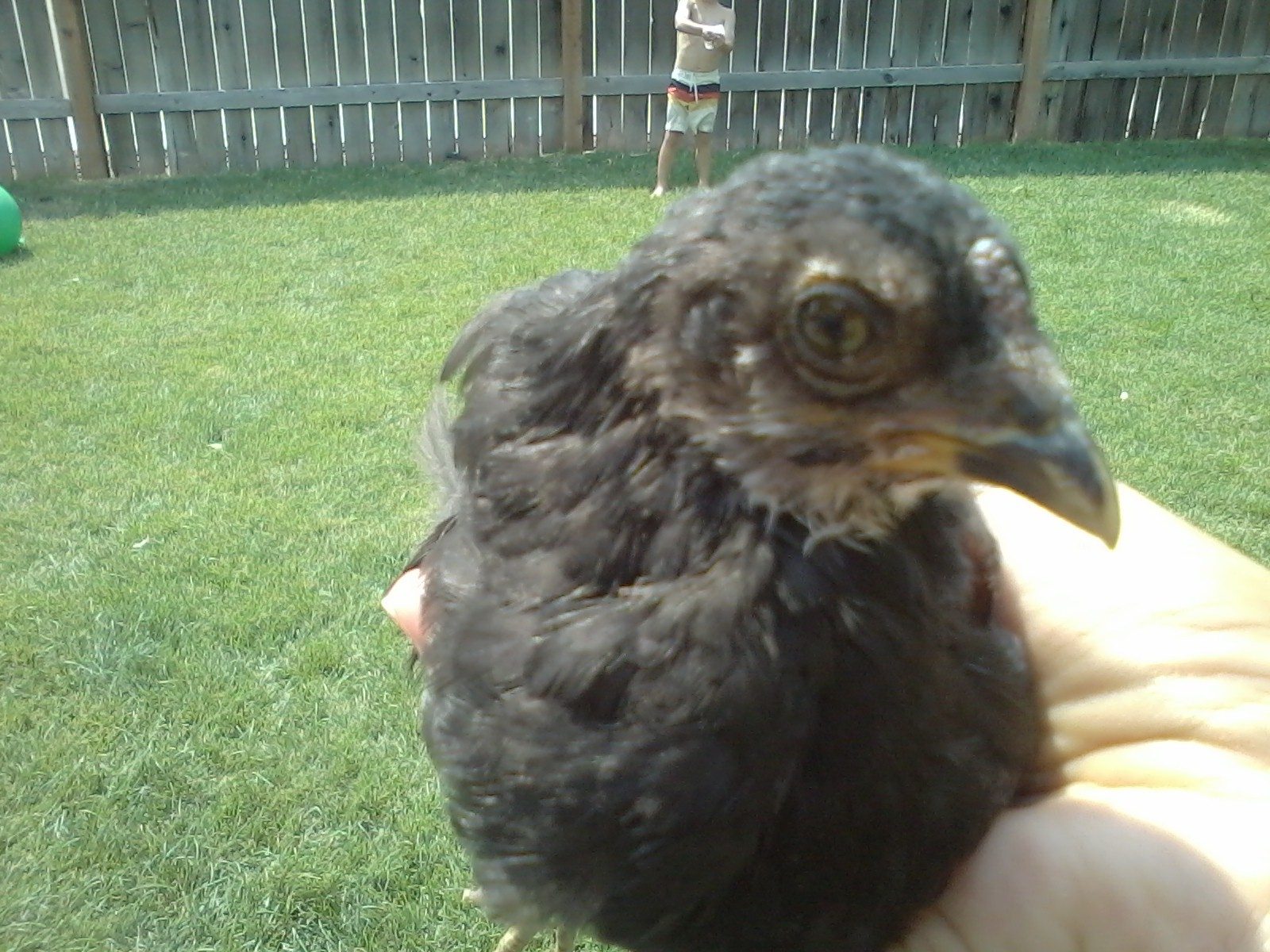 Hi Sumatra Experts, I have a mystery chick, that I thought was a Black Australop. I bought it when she was 3 weeks old, and that's what I was told. But on a different thread, someone else pointed out the rose comb, and said this is a Sumatra. This little chick is twice as small and twice and spunky and brave as the other chicks of the same age. What do you think?