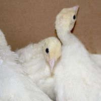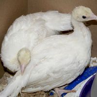 You can't tell from these pics but they have blue eyes! Something to do with the lack of pigment in the white peachicks. :)