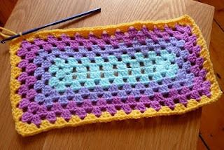 Thanks another picture guide! That's cool! I found some rectangle patterns in a few of my books. Leisure Art's ~ 99 Granny Squares To Crochet and Beyond The Square Crochet Motifs by Edie Eckman. Not sure when I'll have time to try them, but can't wait. I think I want to check out the other yarn colors I couldn't find at Walmart first. YAY!!!!!Found another pic of a classic granny square rectangle. You can see how the link that Kate posted starts this square off. The link that Kim posted shows how the different sized "squares" look in a finished piece.![]()