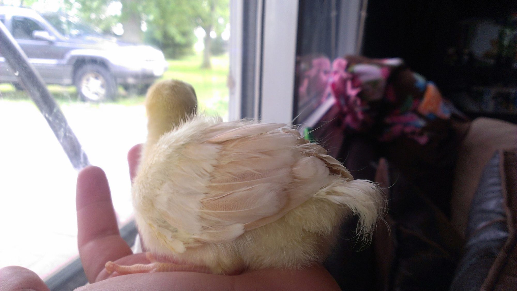 parents are a purple hen, blue hen, and a blue male. so a light chick was a surprise to begin with. (granted they could be split to anything.)