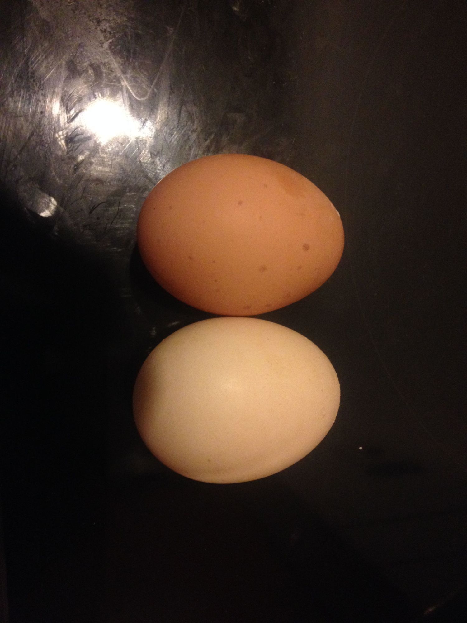 I collected my eggs this morning and to my supprise I had a white egg , this has not happened before . I have two bluebell hybrids (had them 2.5 years) two pure breed Rhode Island Red (had them just under 1.5 years) two pure breed welsummer's (1 year) and two pure breed cocko Marans (POL) so any ideas how I've got a white egg ?