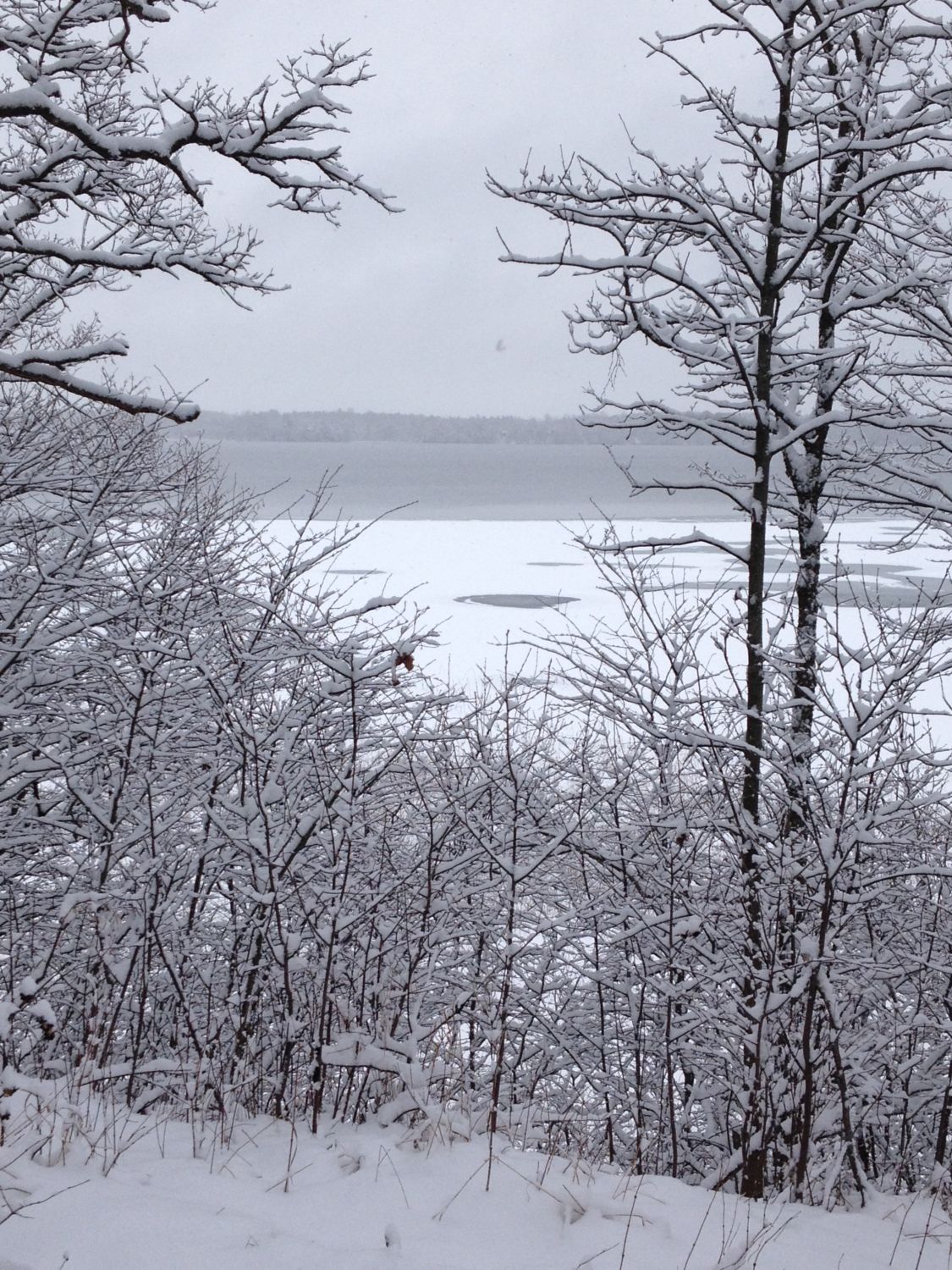 I'm a lucky person. This is the view from my parking spot at work. Had to Run out and share some Winter beauty...albeit a dusty phone camera lens! Ha.