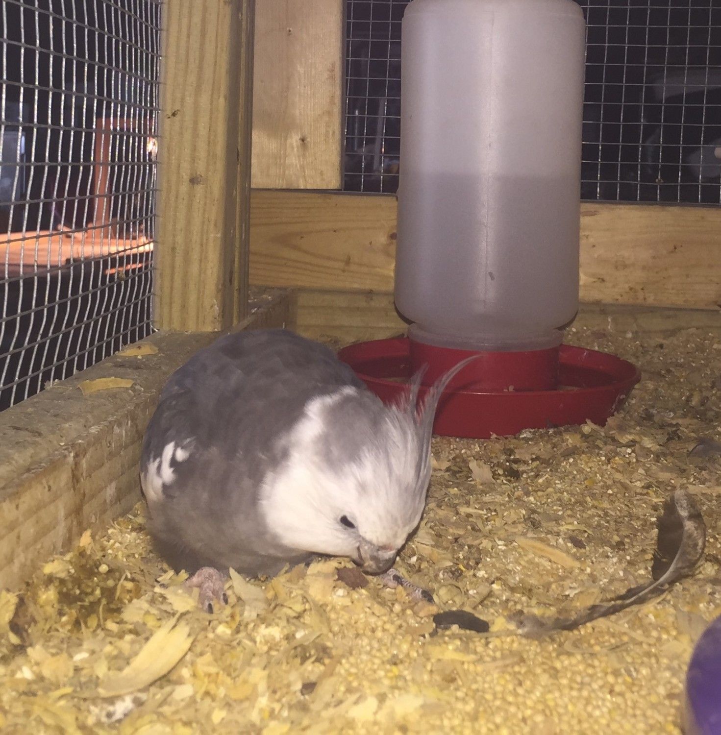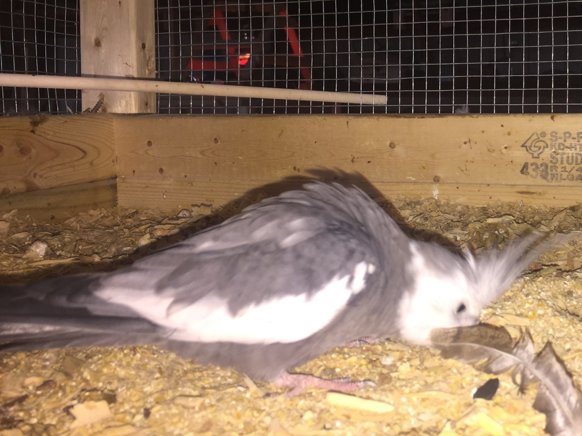 We moved birds around to free up a cage we were using for a hospital bed. Putting the patient in the transfer cage for now.