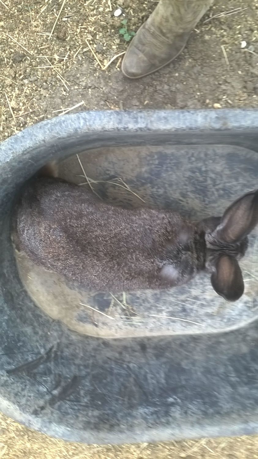 I raise Californians for meat. I have a litter of 7 that need to get processed this coming week. I do them around 14-15 weeks and get about a 3-3.5# carcass from them. I have another litter of 4 in another cage that are about 2 weeks behind them.![]()