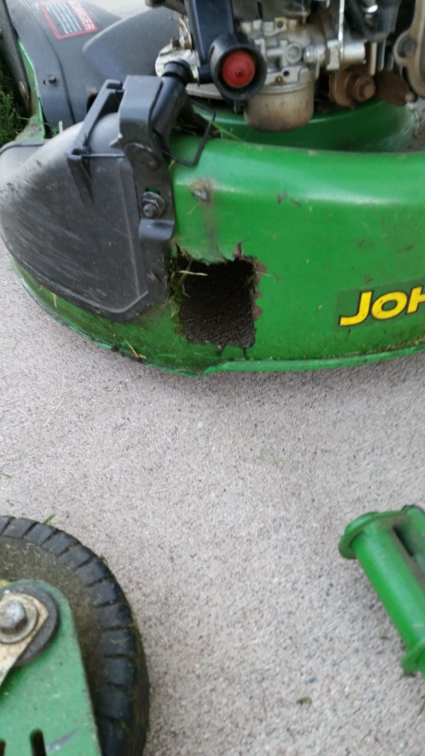 Built to sell but not to use . I put things to the test also . They should tell us if it will not do the job . Then we could buy another brand .Now, I realize I'm hard on stuff. I even warned my DH of this prior to him marrying me. However, I think a wheel exploding off of a lawn mower, for no good reason, should be put on the good people at John Deere (and possibly Briggs and Straton) 'cause I'm not exactly sure how this can be blamed on me...![]()
