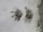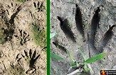 raccoon size is right, but they have little human feet like tracks and not the two nasty claws in the front.