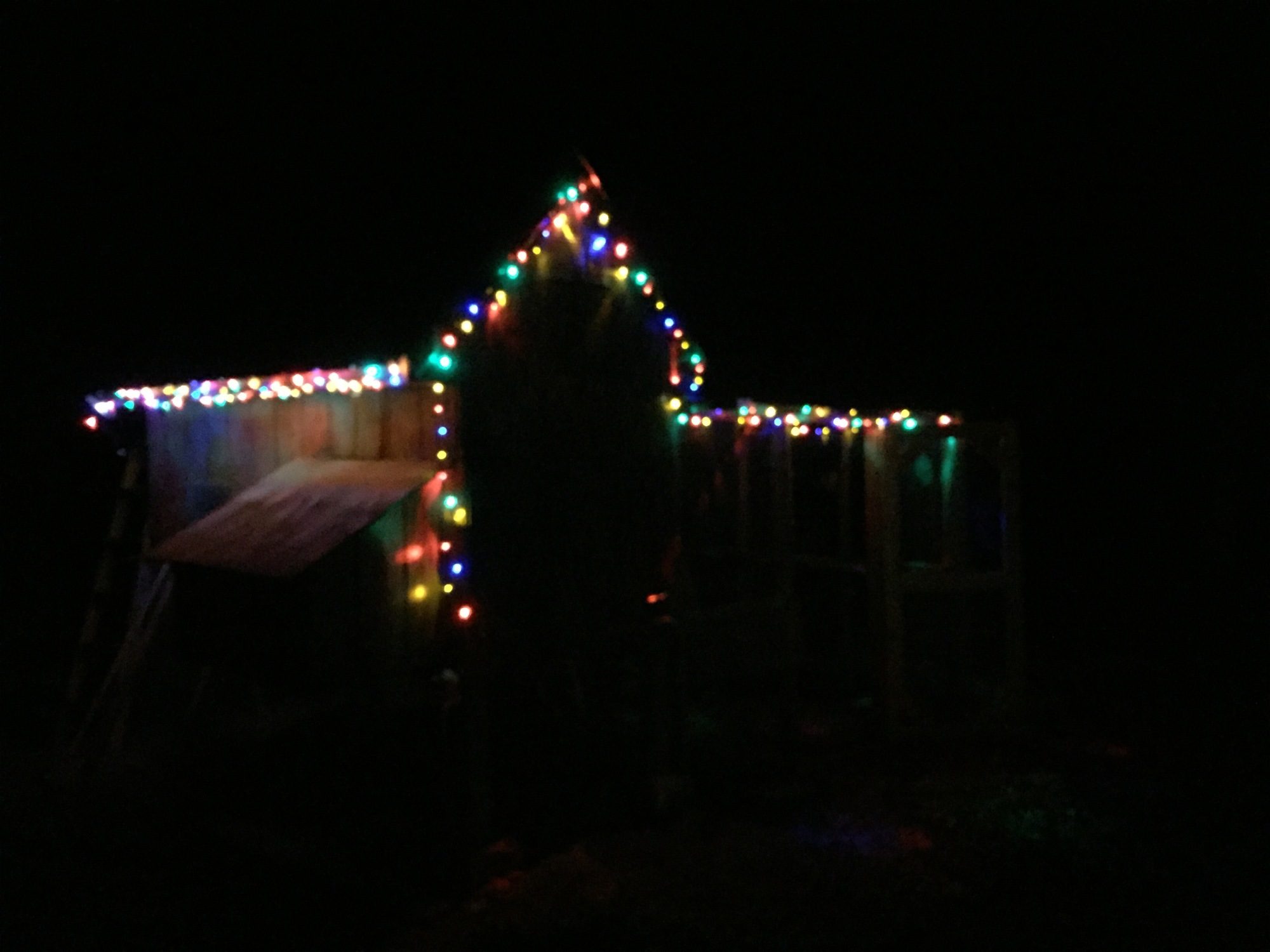 Crappy rainy night here. The hens were still out in the dark doing stuff. Silly girls. Had to turn off the yard lights to put them to roost!