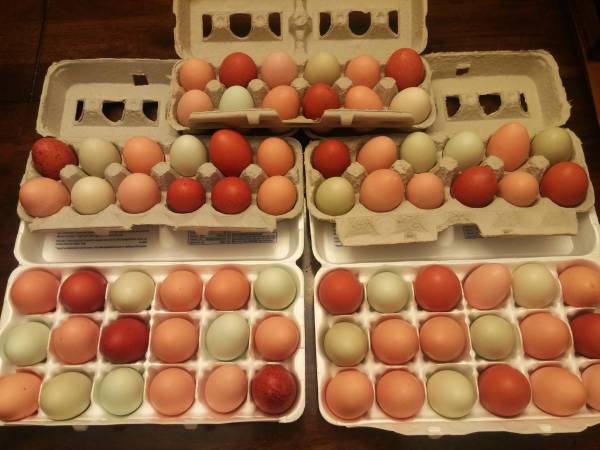 These are the eggs I get from my Black Copper Marans (obviously not the olive, blue, or light brown eggs). My goal is to get a BCM rooster this spring from a nice dark egg. I just don't know who has the breed locally and sells fertile eggs/chicks.