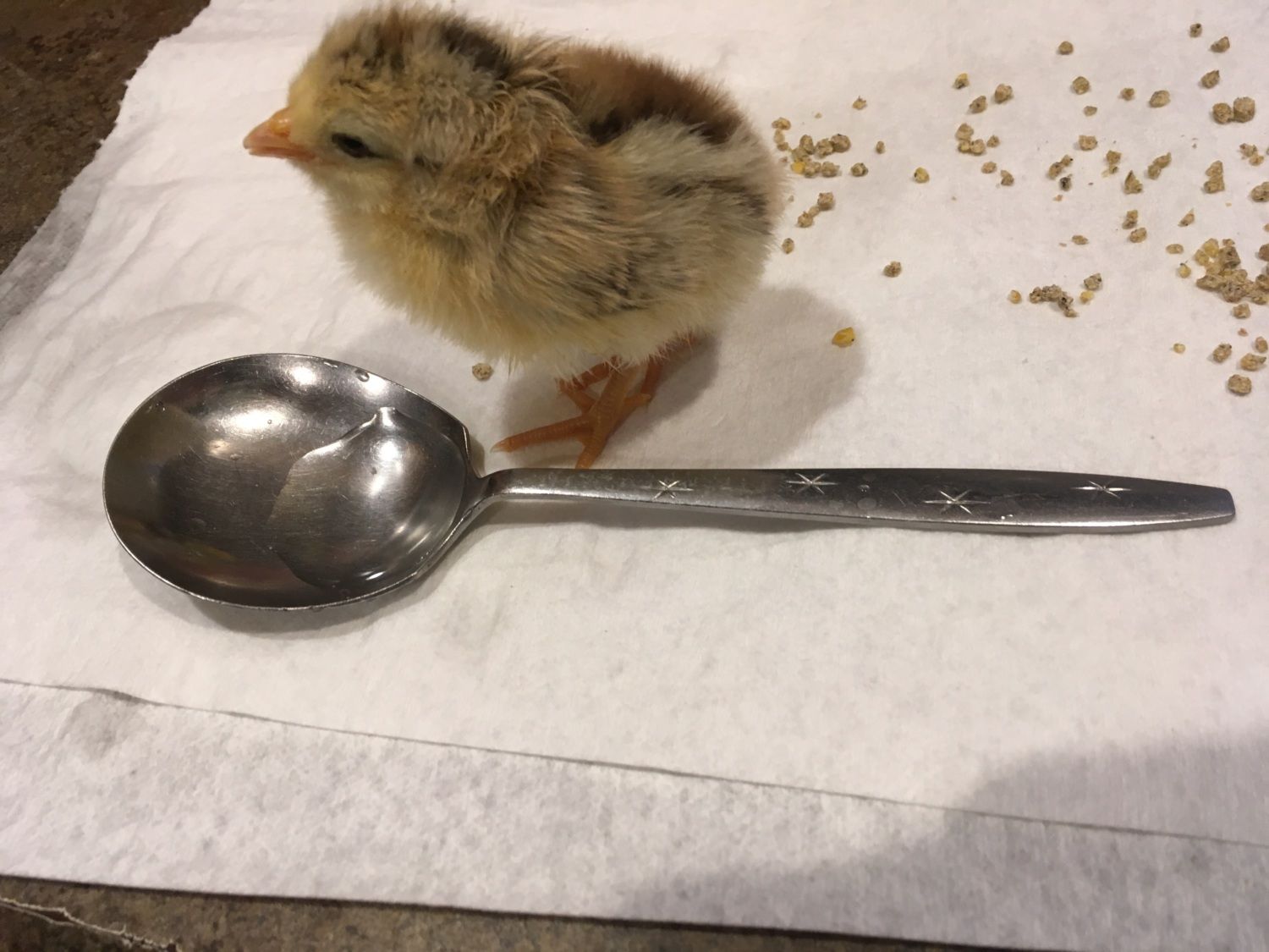 I found a big ugly spoon to put shallow water in for her to learn how to drink. She is slowly learning... And yes I am darn near positive it's a pullet.