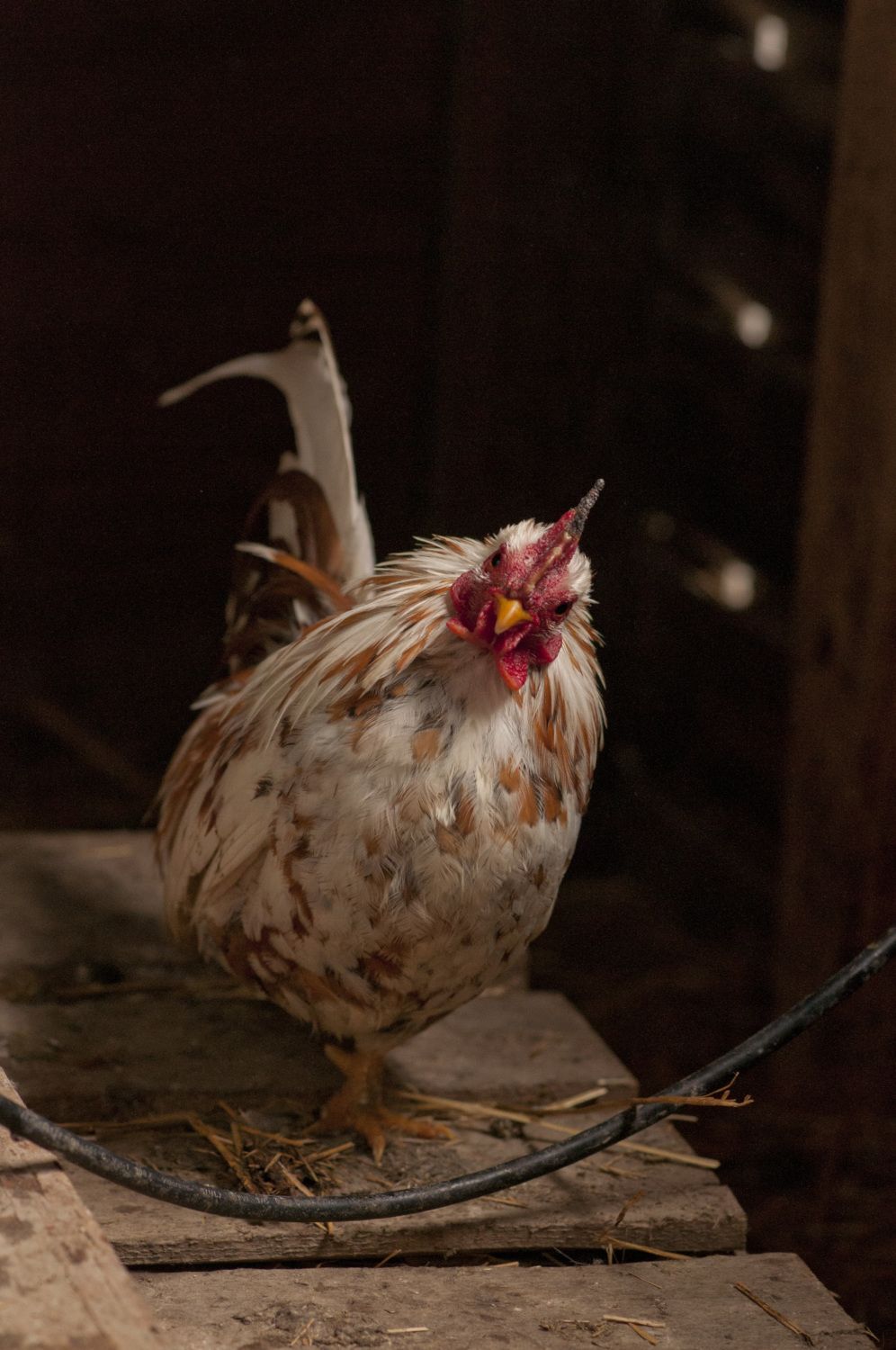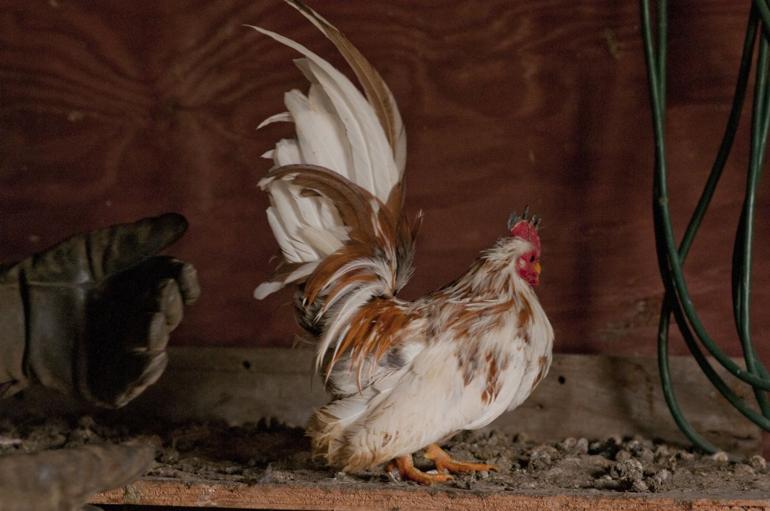 Poor thing looked like he didn't understand why the ladies weren't flocking.I made a change yesterday with my Foo-Foo's. I got tired of the rooster I had. He is either going to Pierz or the soup pot, I am not fussy which. He attacked me for the last time. He was not a happy rooster in his cell. I was thinking of changing rooster based on looks, so this guy lost twice. The new guy kind of had the gals worried they were trying to hide from him. Here is the new guy:And watch the girls reaction to the new guy.. IT is funny they were giving him a cold shoulder I think...