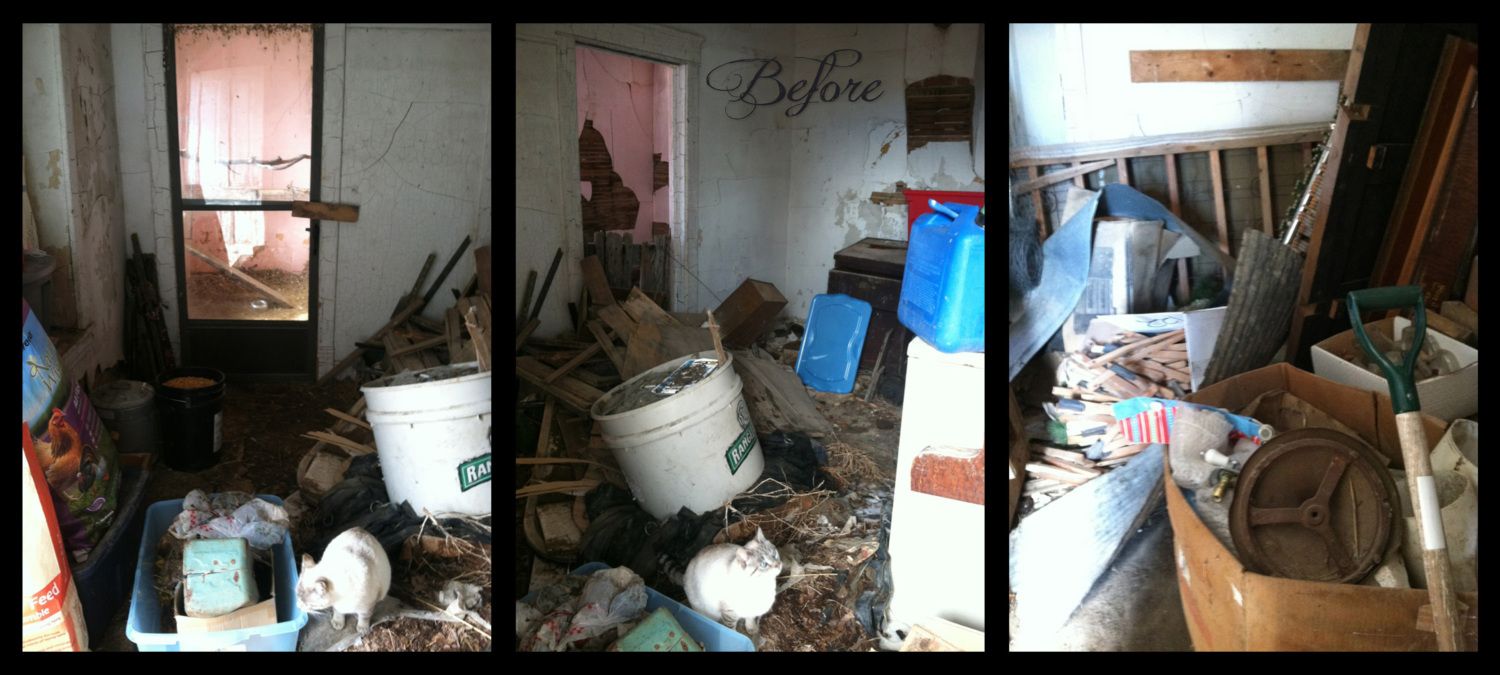 Finally making some progress in our projects! Here's a before and after of my new "coop". And by new I mean 150 years old. I only get half the house to do what I want, my DH decided he needs the other part.
