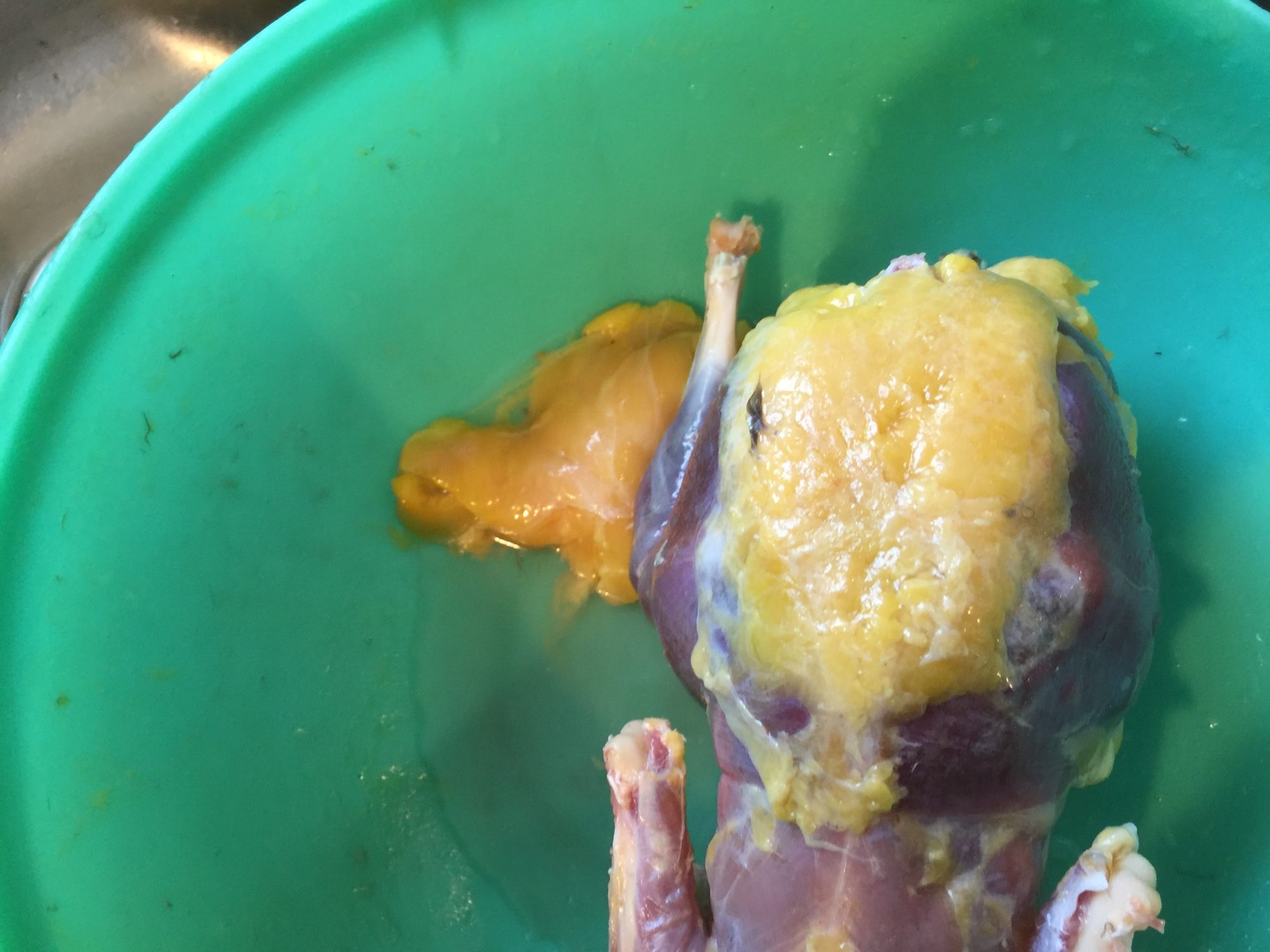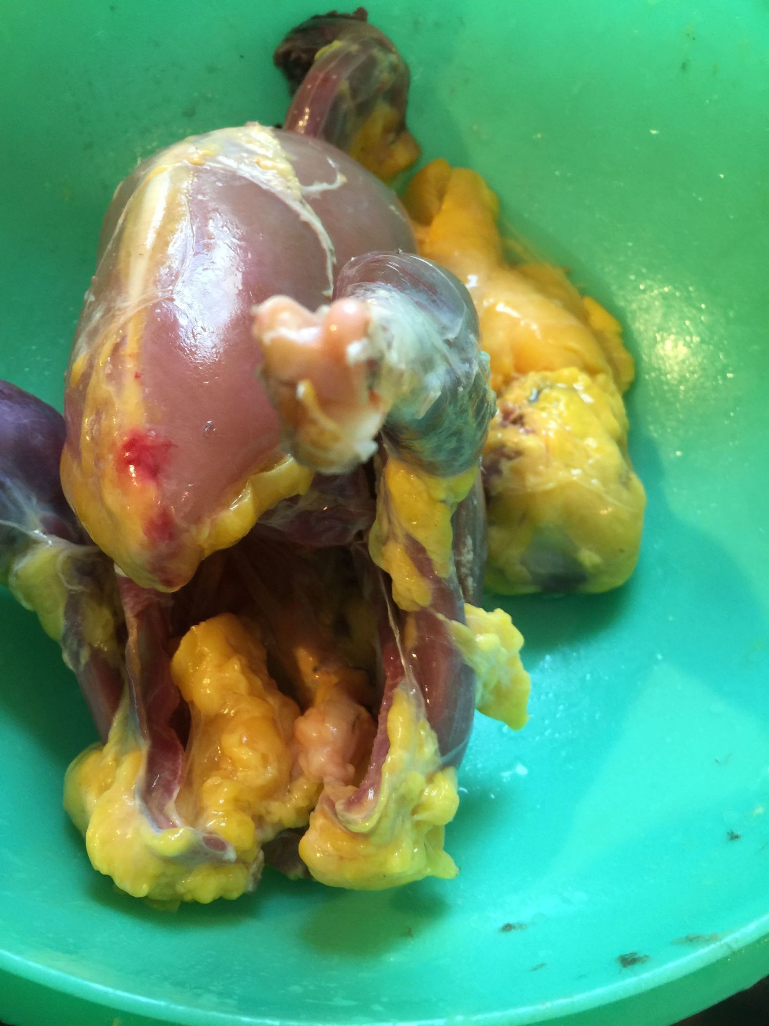 I told her "Yep, Guneas can;t be trusted" Then I added, "Actually I just wanted to let the blood drip out before I finish cleaning it"