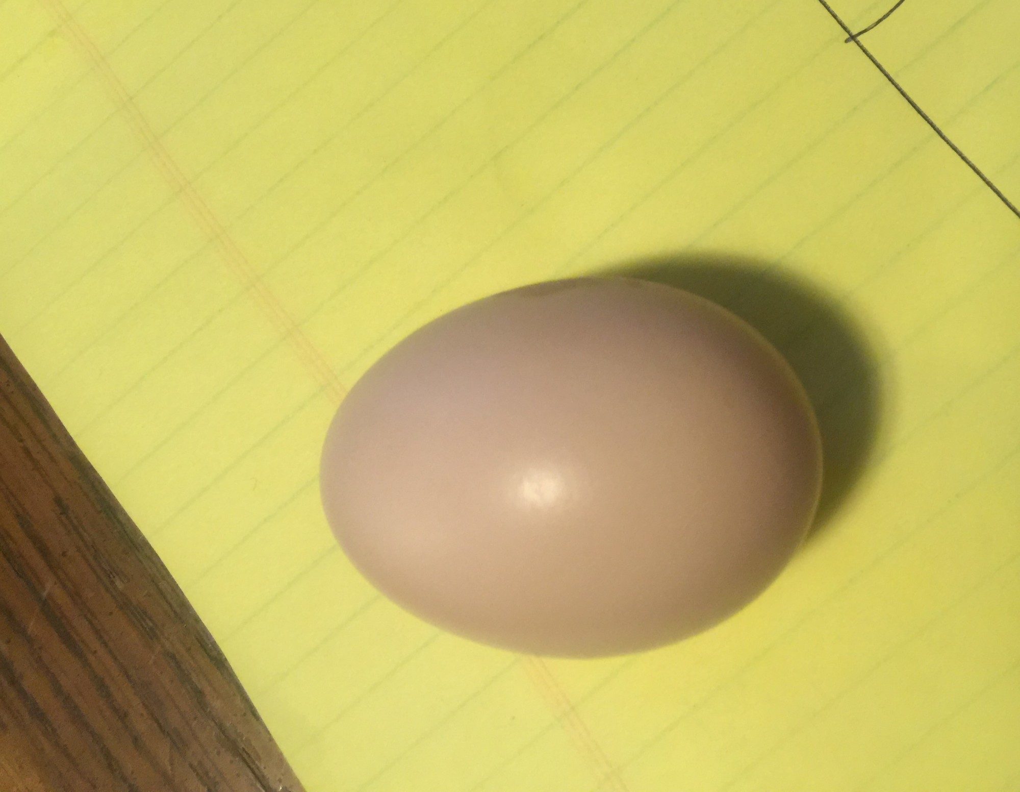 Here is the egg I think the CP laid today. EJB does this look like it is one of theirs? If it is they have a "different" shape from my other eggs, and I have been getting them for a week or so. I have just started getting this color/shape egg. I had 3 of them in 3 dozen I sold to a friend yesterday and I have 2 on my rack now. I checked some egg I put in the fridge last week to make deviled eggs with ( I like the egg a little older for hard boiled). There are no eggs like this in it. I am thinking they are lay better than that review said. EJB did not have these birds on artificial light. I keep the in ICU for a week. So they have only had 2 weeks of light and started laying already. Not bad.