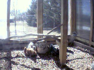 Mine over a week old, I feed in a cardboard box. I leave the sides about 3-4 inches high on one side and 5-6 inches on three sides. I make sure it is large enough to fit the feeder without the stupid ones getting trapped along the sides. I put the feeder in the box and let them go to it. Before I refill the feeder I make them clean up the mess on the floor of the box! We will have decent table manners here!