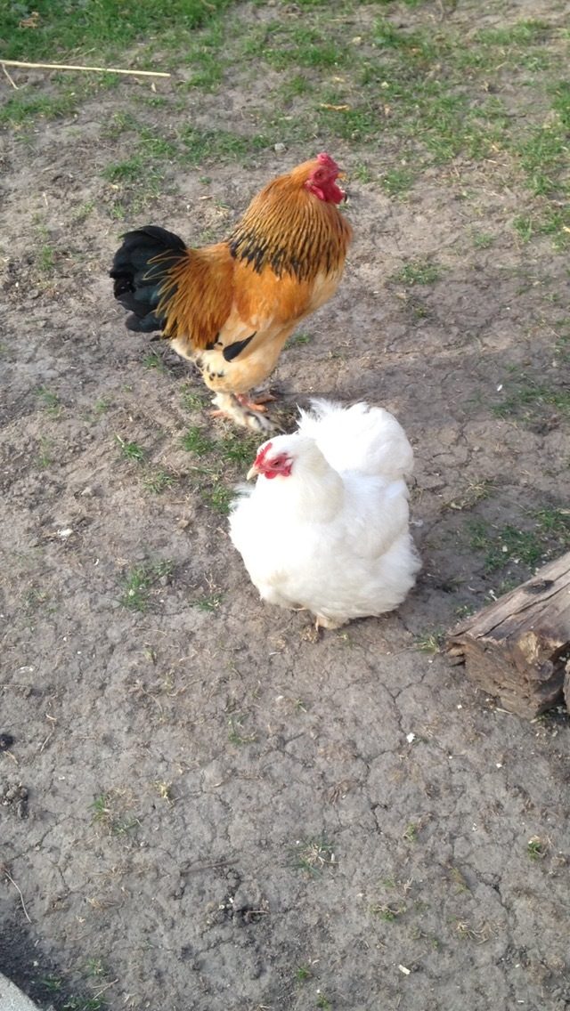 Marshmallow (the broody) and the father of the chicks. I didn't have any of marshmallows eggs to hatch, otherwise i would've