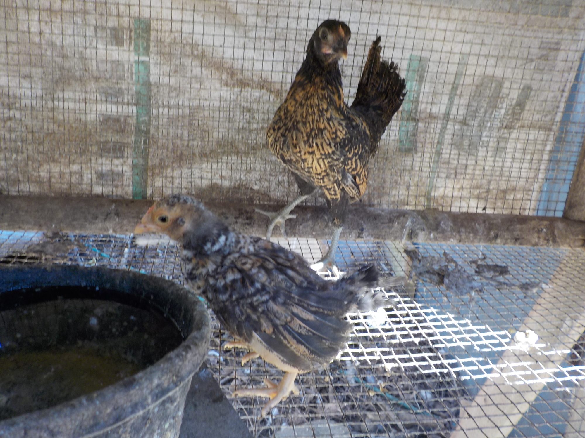 I have 14 chickens- no 13 (one died recently) and 4 two day old chicks! I have a mottled Cochin bantam hen (mother of two of the chicks) and a white Cochin bantam hen, (the broody taking care of the chicks). I ordered some more Cochin bantam chicks from a breeder (blue, splash, and lavender) and am excited