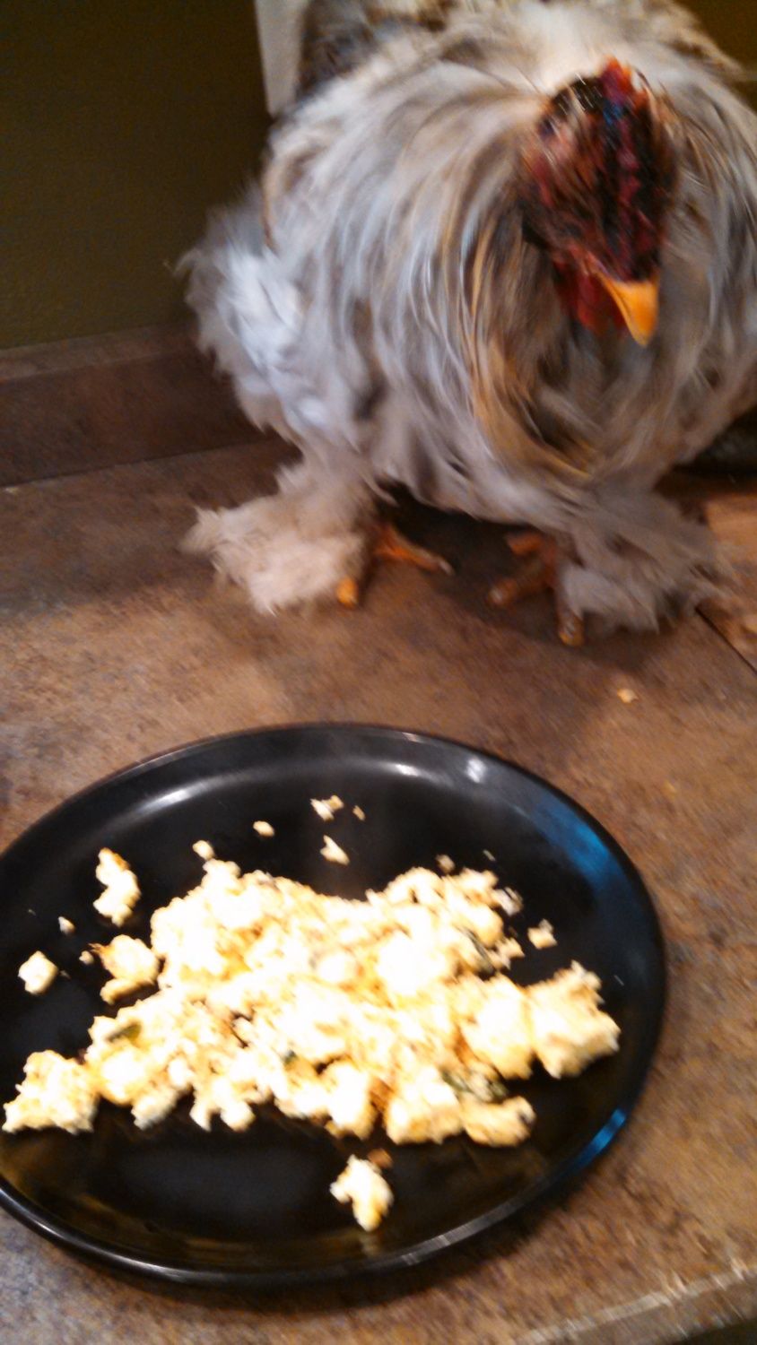 Zeuss is looking good! Of course, scrambled eggs, a bath, and a good blow drying would make anyone feel like a million bucks.