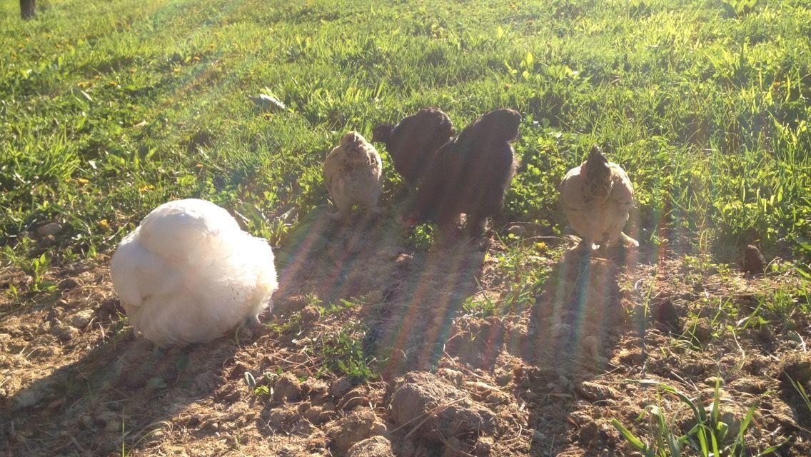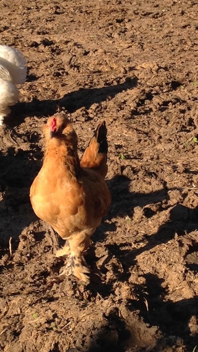 Just thought I would post a few pics I took this morning. (White Fluffy butt is marshmallow, and her chicks)