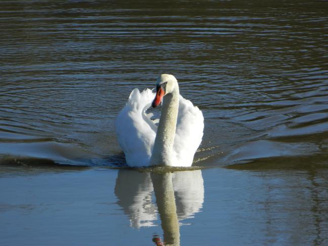 This goes on for a couple of weeks, usually, and all the while Delilah is out on the water bathing and preening and her body language literally is like "I am the queen" while Samson does all the work! But I think it is so cool because once the eggs are all laid and she starts to sit, that's it. Almost no more swimming, very little food and water--just sit and be patient for the next 34 days. I'll see her get up a few times during the incubation period, but never more than 10 minutes as a time and it's really rare. Therefore, it seems only fair that she get that "pampered" time before. Samson pitches in big-time with watching the little ones as soon as they hatch and it really seems like he is purposefully giving her a break. He also never stops patrolling the whole time she's on the nest .....that will probably be the end of your sweet and tame Barry for a while !! We usually have to carry a broom to keep him back when we try to put food in the feeder that's closer to Delilah during that time.