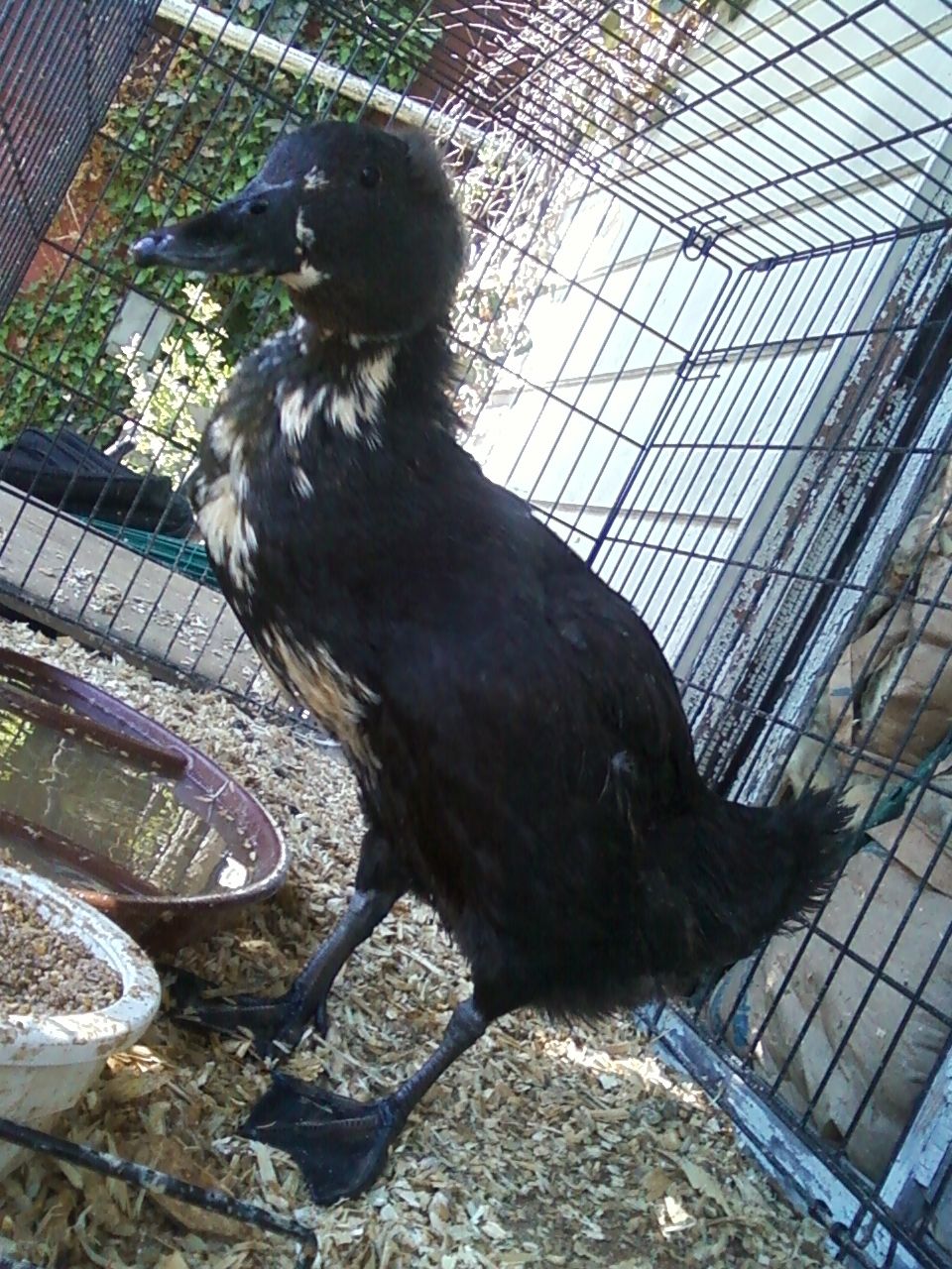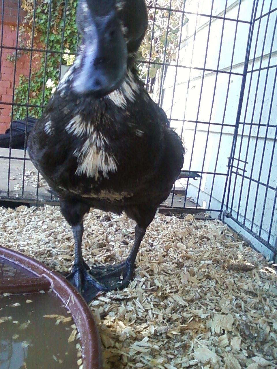 Can you believe I just put that water in there? we take her out and let her play in the yard running around like a silly goose chasing bugs but with all the cats in the neighborhood, its not safe until we build a much bigger coop /area for her. Can't wait to move so she can have a pond all her own to play in all the time