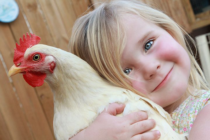 Awwww! That photo of your daughter hugging the hen is precious! Pretty birds, too