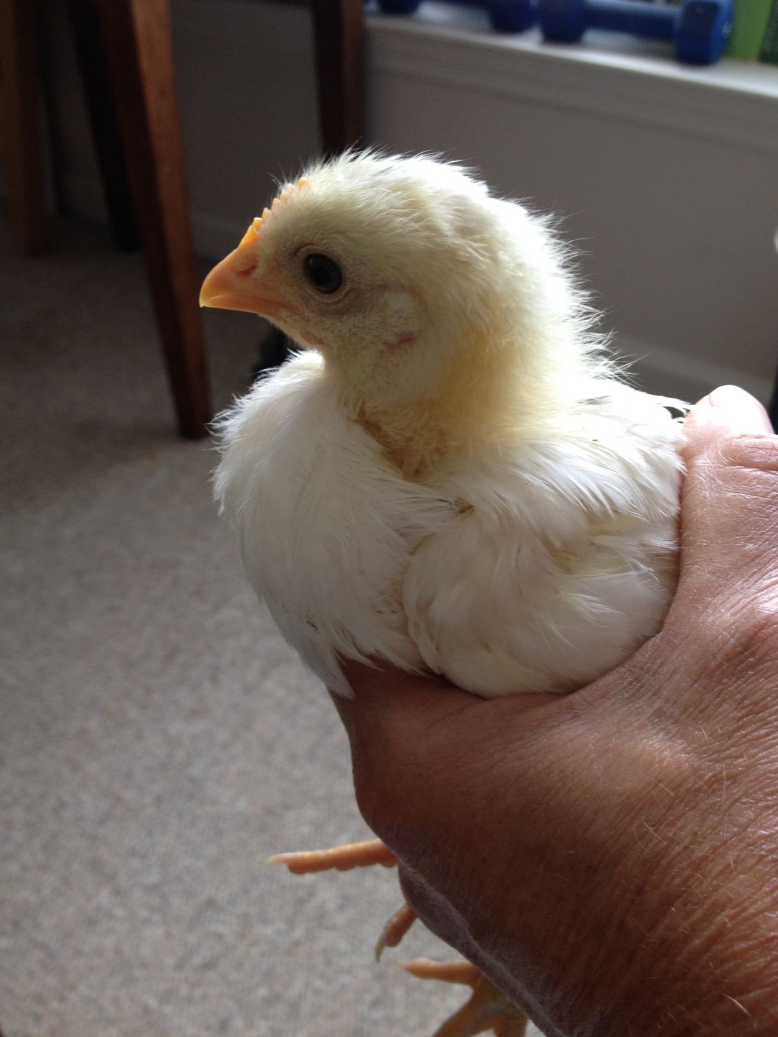 This is the chick that hatched with a vaulted skull - reminds me of a Polish chick!