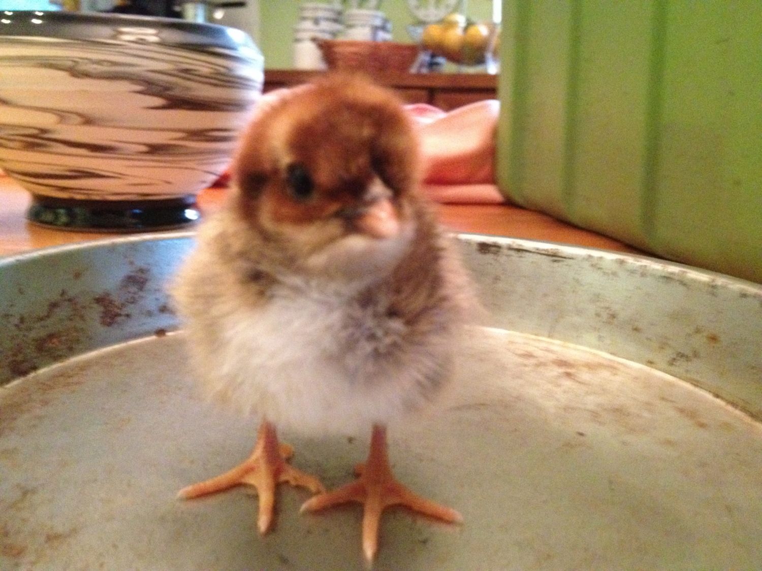 I am a new Swedish Flower Hen owner! Four chicks! Here are pictures of two. I know the brownish one is a typical look, and I have two of those, one sort of caramel colored with darker patches, and this lighter pretty one! The picture didn't capture her creamy color, and two-toned head, with two darker yellow patches on the body. This brown one got tail feathers w/in a week, but at 4 weeks now, seems to have a comb! What should I think? These are two-week old photos.