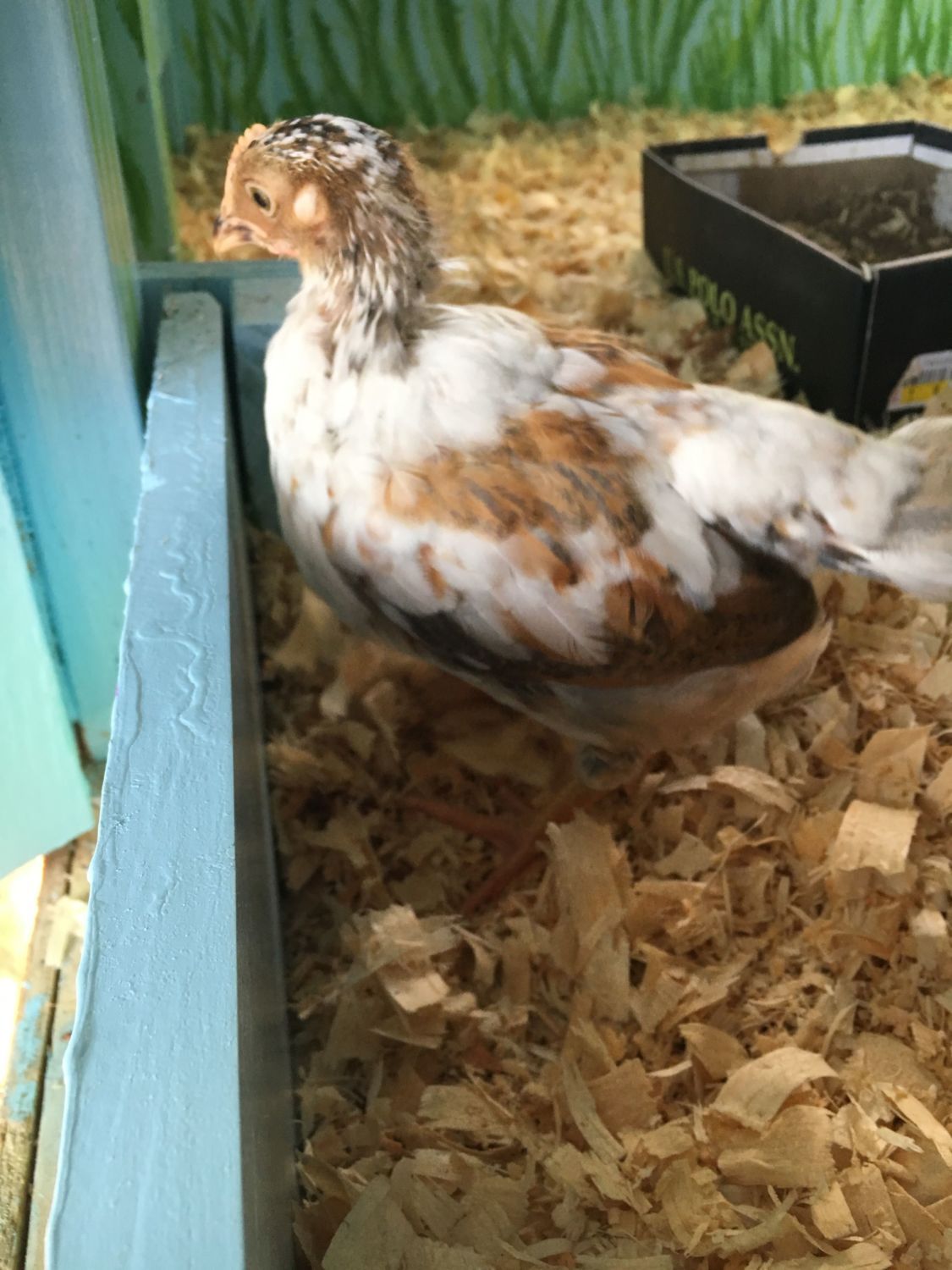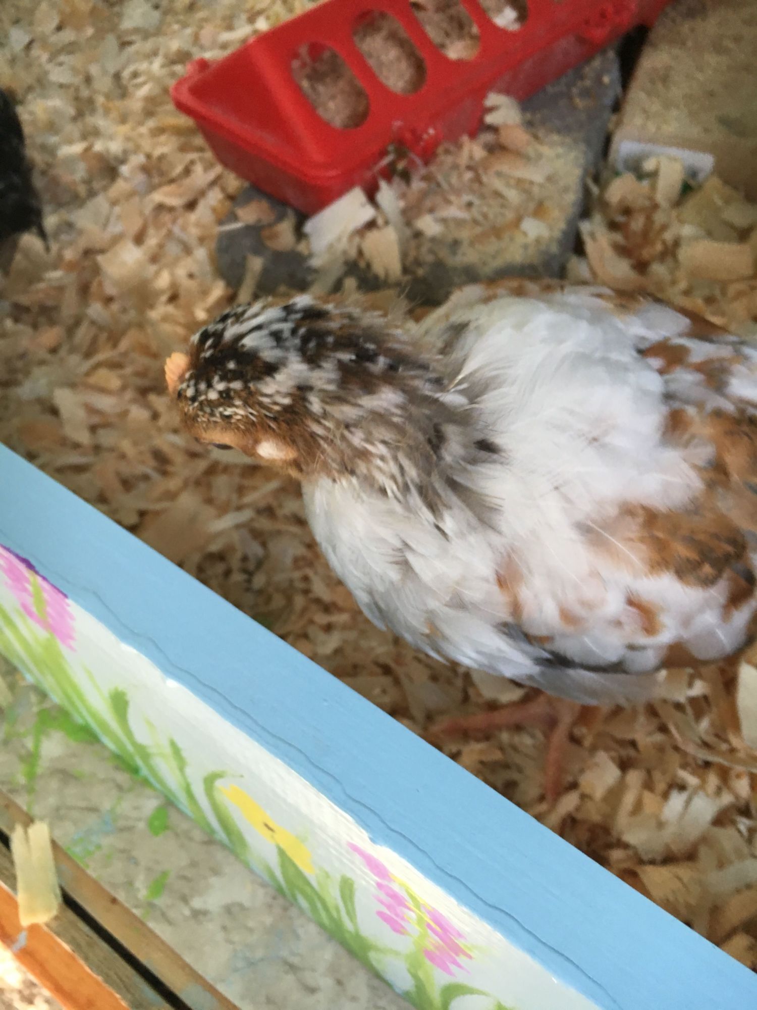 Here are some pictures of my chick from this morning. 4 1/2 weeks old. I'll try to post a before and after pick. Besides the regular is this a pullet or cockerel time old question is this normal for an almost all rusty and grey colored chick to turn mostly white? She had rust colored down but look at the rust on her wings probably a cockerel correct? Will a different color come in behind the white feathers? I'm so confused by this chicks color. I so badly want to keep him/her but I probably wont be able to.