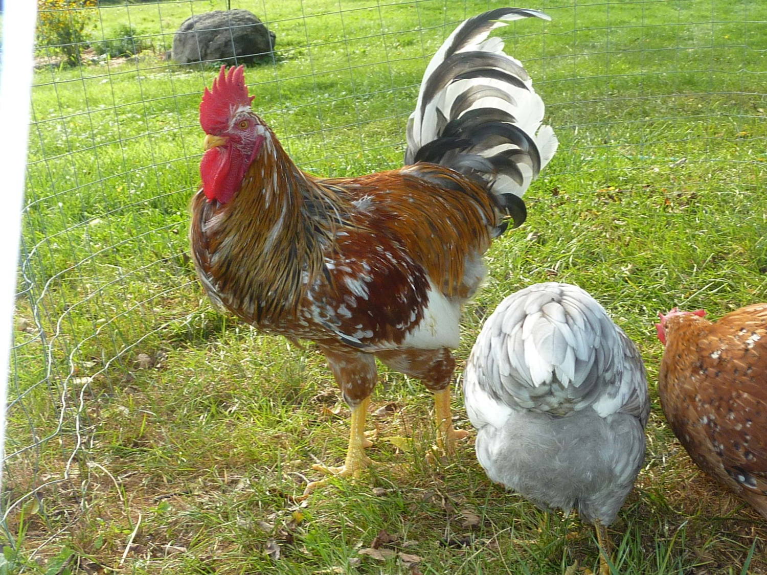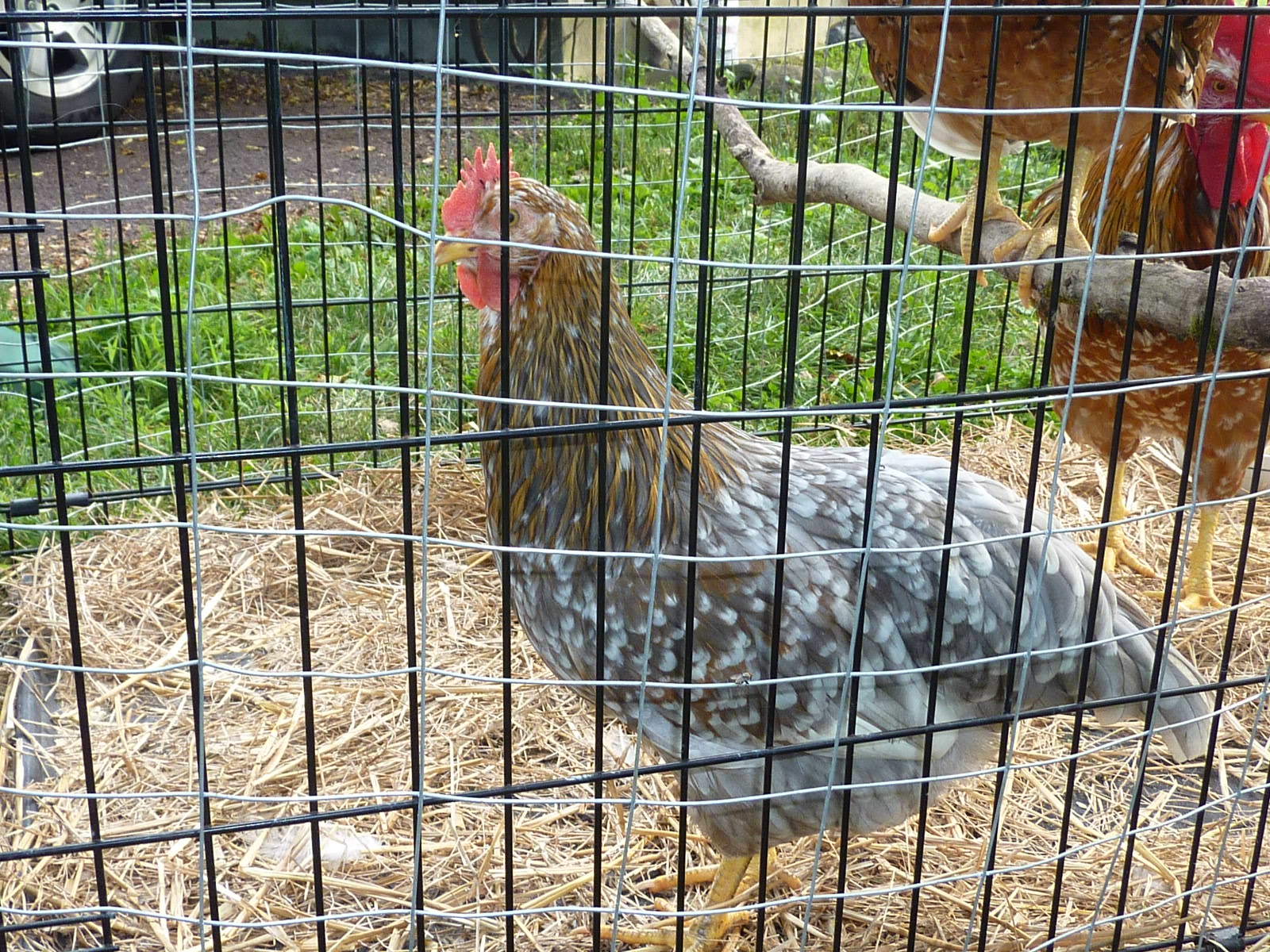 so I'm giving her some treatments and I expect she will recover.I'm glad you found your chick! I know how you feel. A few weeks ago we were gone most of day helping some friends. It was the first time we had been gone for very long since putting up the electric poultry fence and letting them free-range. When we got home, both of my EE pullets were missing. We could find no trace of them, not even a feather. We thought it would have had to have been a hawk. I could hear bird cries in the trees across the street by the creek, but I wasn't sure if they were chicken. I had given up looking and was just praying they would show up when dusk came. Then I heard a noise from one of my SFH rooster pens. When I looked, both of my pullets were up on the roost just as happy as could be. They had found a hole. I have found them in there several times since then. I guess they like the SFH roos better than the Ameraucana and OE roos that they run with!OK, this is crazy weird.