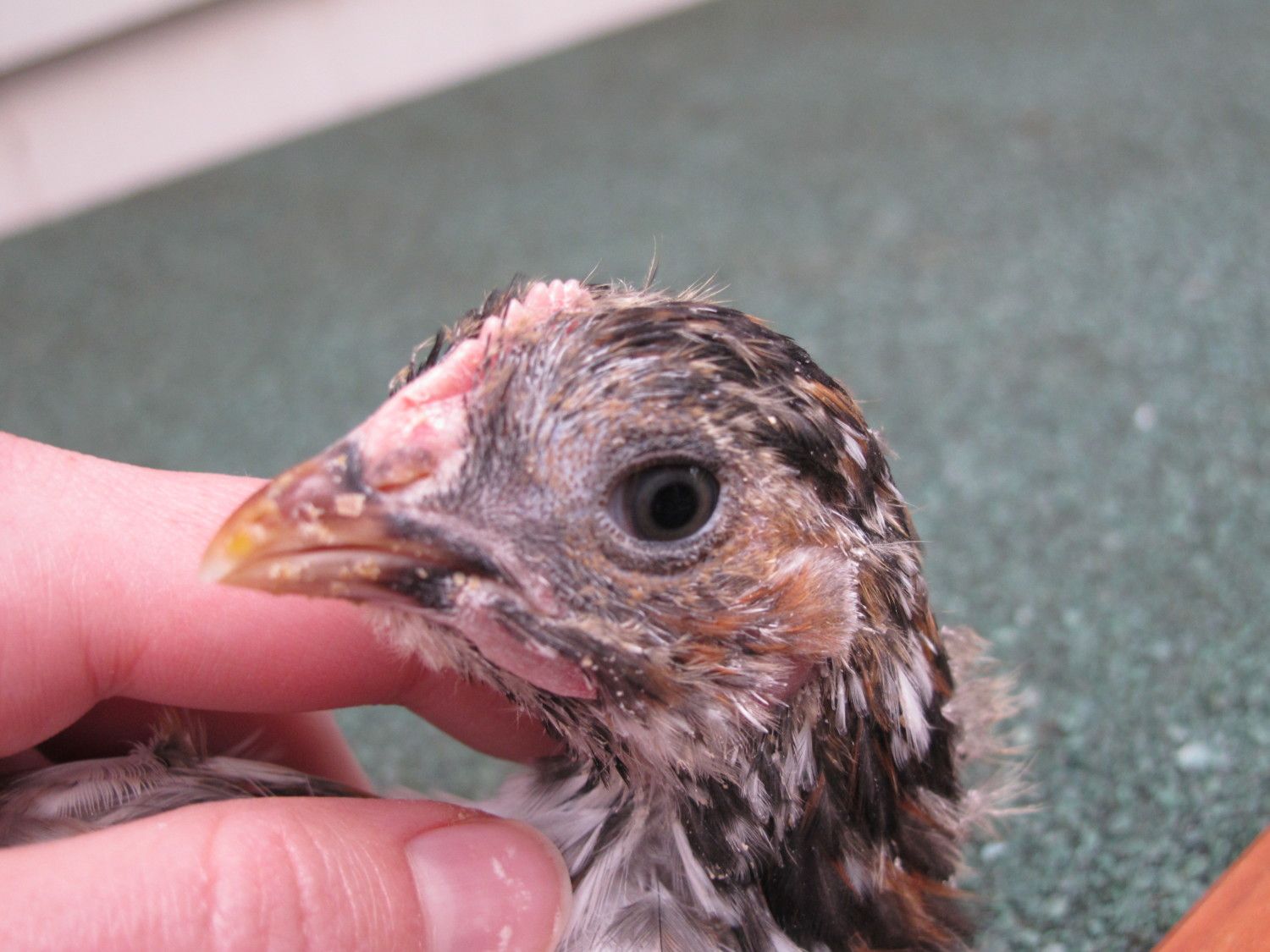 Thanks for the advice Cynthia, I will watch and wait for a few more weeks. I would be thrilled if I ended up with a SFH as pretty as yours! I love the Mille Fleur speckles along with the black around her neck and tail!Actually, my girl that I just posted looked like this at 6 weeks. I was so sure it was a boy, and my blue was the girl. I had it backwards. The wattles on the boy/blue.. got big fast from 6 weeks on..so keep this one for a while, watch for just a while longer.![]()