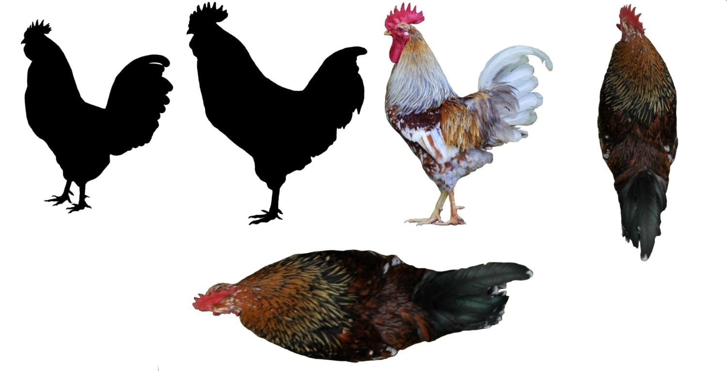 We can see that there is a common body shape, even between the 7 month old cockerel on the far left and the fully mature Soren (2nd from the left).