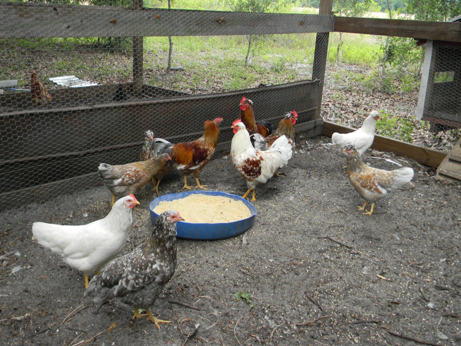 Raw meats: more during winter when they can't find their own or get bugs. And now getting to range every day. (If I had my way they'd be able to get all their protein from an animal source.)