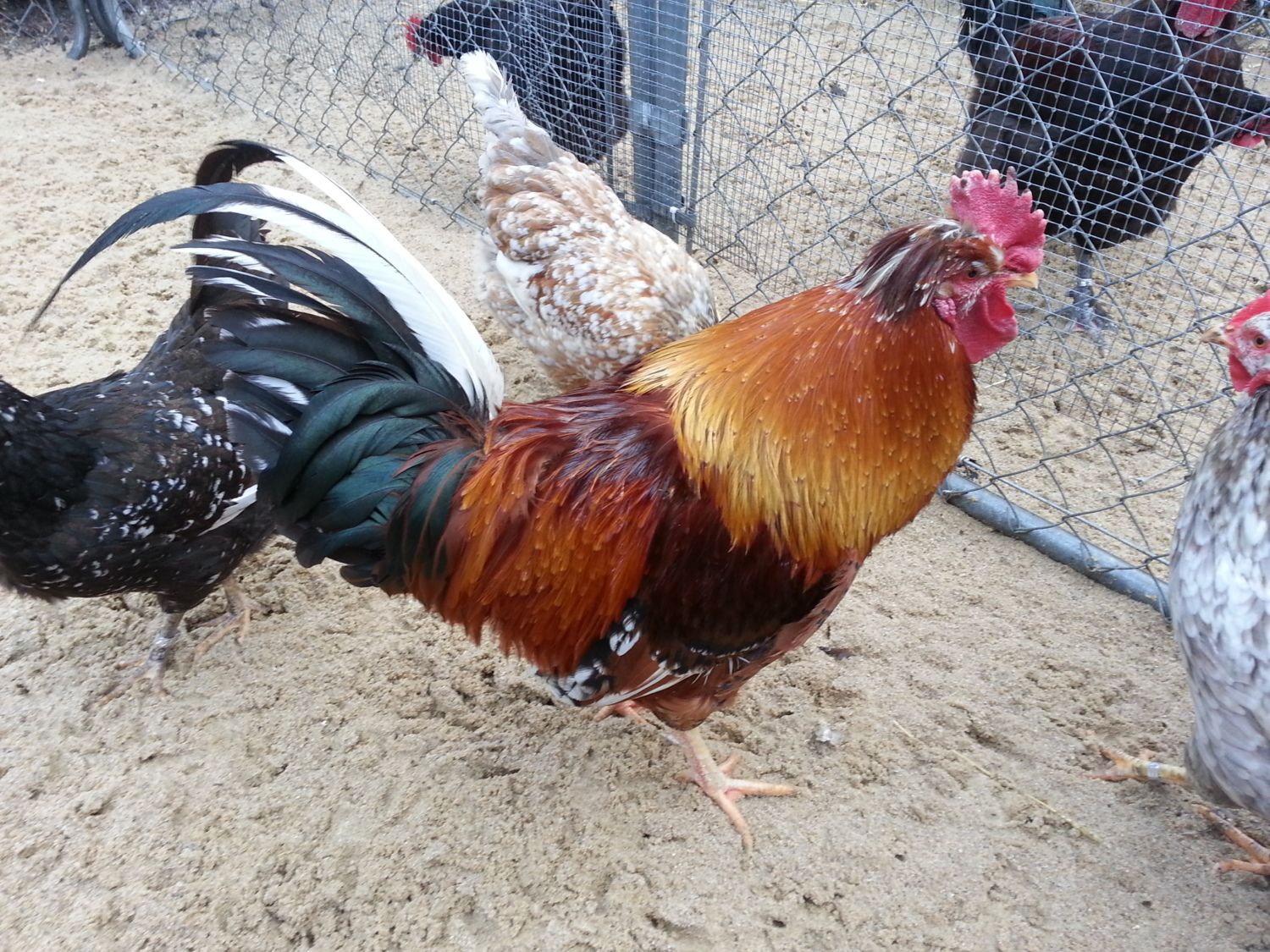 Well my roo with a damaged leg isn't looking so good today. He flew into a dogs face at 12 weeks, and well his leg was broken. He has been doing fine. About 26 chicks have been hatched from him.