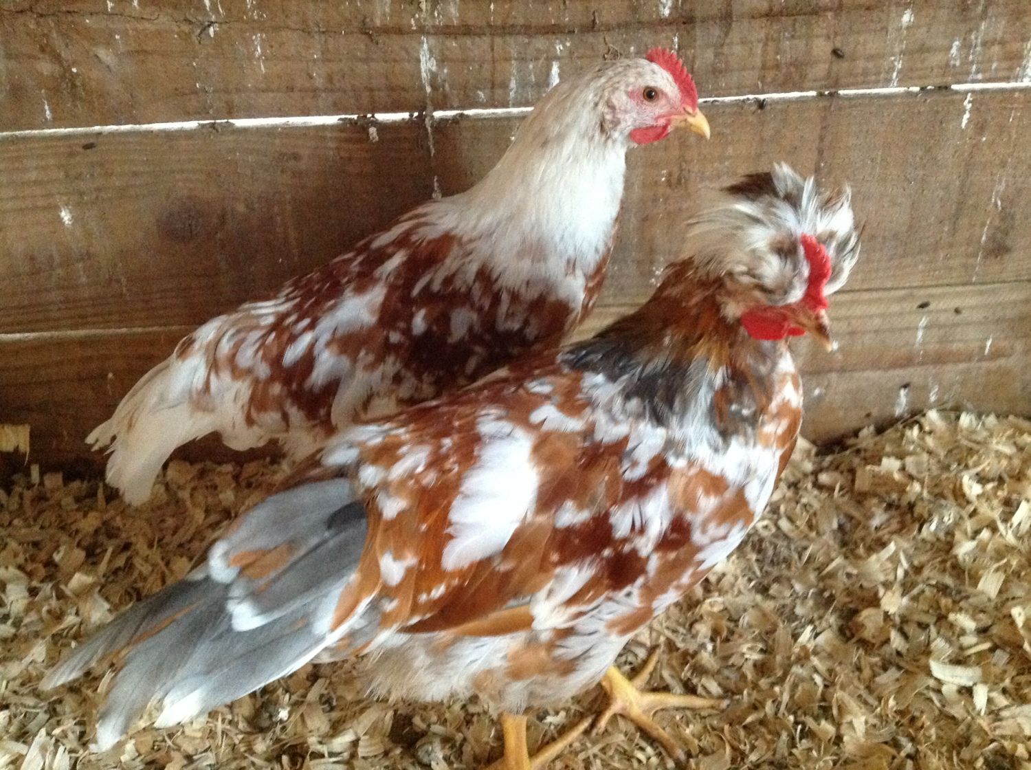 Hi, everyone. I posted on this thread almost a month ago, trying to figure out if one of my SFH's is a pullet or cockerel. Well, I'm checking in again for your updated opinions. Both of my SFH's are now almost 4-months old. Clearly, the one in the foreground, "Olaf," is a cockerel. How about the one in the background, "Anna"? Since I posted several weeks ago, "she" has started to stand up a bit taller, her wattles are just a wee bit bigger, and she has sprouted longer tail feathers that hang down. However, Anna is much smaller than Olaf, much less colorful, and has much smaller comb, wattles, and tail. Anna also tends to hide behind Olaf. Thoughts?