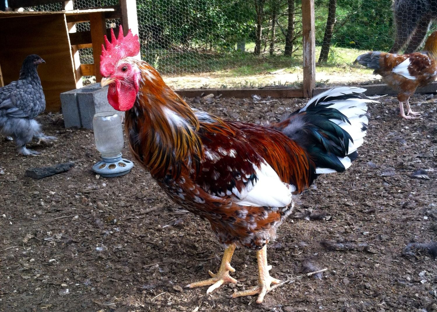 I think there are pictures of my Basque on the Basque thread. SomewhereOh so neat! Congratulations on a great hatch Cackle! I have 5 EOBasque I am very excited to have and watch grow out. I think I was fortunate and have 4 pullets and one roo. I hadn't intended to keep a roo, but have fallen for them a great deal. I only have 2 coops and pens, and my resident head roo is a beautiful black/lav split Ameraucana named Clark. He's been so good around here, I hate to part with him and have a tough decision down the road. I love the blue egg gene and having him around to make lots of EE's or Ameraucana's. I lost my his breed partner due to my stupidity of forgetting she was left out of the closed coop door.. Still feel so awful about that. She had a horrible history of laying though. My intention was to have the new coop and run for the SFH's and then the other for my mixed breeds and Clark. I have to see how this EO roo grows out, and if he is a nice well mannered boy, I may just have to change plans. How long have you owned the EO Basque breed, and are you liking them?