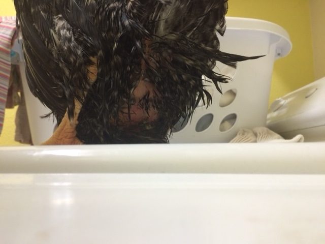 We just gave her a bath, so that's why she looks a little scraggily. I think it's probably internal egg laying... egg peritonitis... just a guess on that spelling. Her crop looks good- just gave her olive oil soaked bread and she loved it.