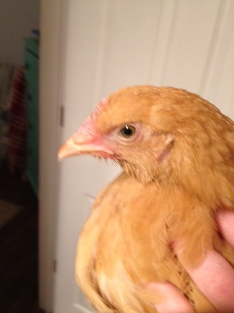 Hey Yall this is ButterCup she is a 3 months old yesterday evening I went to check to make sure everyone got to bed ok and I notice she was perched on a small board at the bottom of the coop not up on the roosting poles with everyone else so when I picked her up I noticed there was no food in her crop.