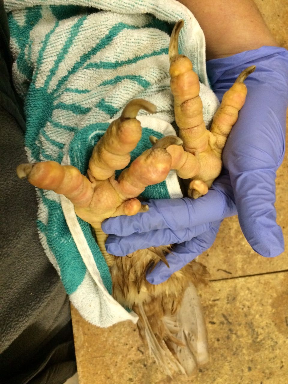 The two main things that cause swelling of the feet and toes is gout and mycoplasma synovitis (MS.) MS usually affects the ankle and hock joints, but the toes can look normal. In gout the whole foot and toes look swollen or lumpy. She also may have some scaly leg mites or something irritating her legs. Pecking, ants, dermatitis are some things to consider. Biotin, which is found in human B complex tablets can be used in her feed or a treat 1/4 tablet a day. It can help with foot problems. I would be tempted to treat her legs with a daily warm soak in soapy water, and apply vaseline or castor oil to her leg scales and rub it in. Her poor little head could have the beginnings of favus, a fungal infection, or just from feather picking. A little miconazole or Monistat cream applied to her head, or coconut oil could help. You may never know the real cause of her various issues, but someday when you lose her, I would let the state vet do a necropsy/autopsy on her body and give you some answers. That is the best and least expensive way to get a diagnosis. If you ever get a diagnosis, please update your thread here. The state vet in Kissimmee is in this list: