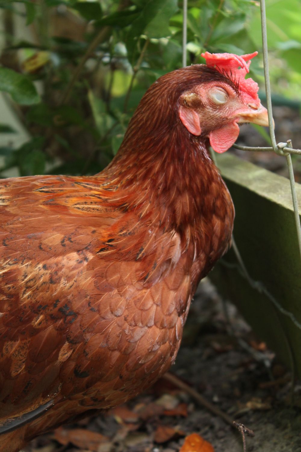 My red has been acting strange the past couple of days. She's usually very mean and active; she pretends she's the roo of our flock of girls. A couple of days ago she started being very docile, not moving much and not eating a lot. She even let me pick her up without pecking at me. Her comb seems pale, and she rests a lot,falling asleep while standing outside. Her poo is a bit runny. Her neck is all out of whack,or so it seems to me. I don't think it's a full crop. It actually kind of looks like there's something wrong with her neck. Does anyone know what this could possibly be? A tumor maybe? Some other swollen part? What can I do to help her? She is my baby no matter how mean she can be, and I hate to see her in pain.