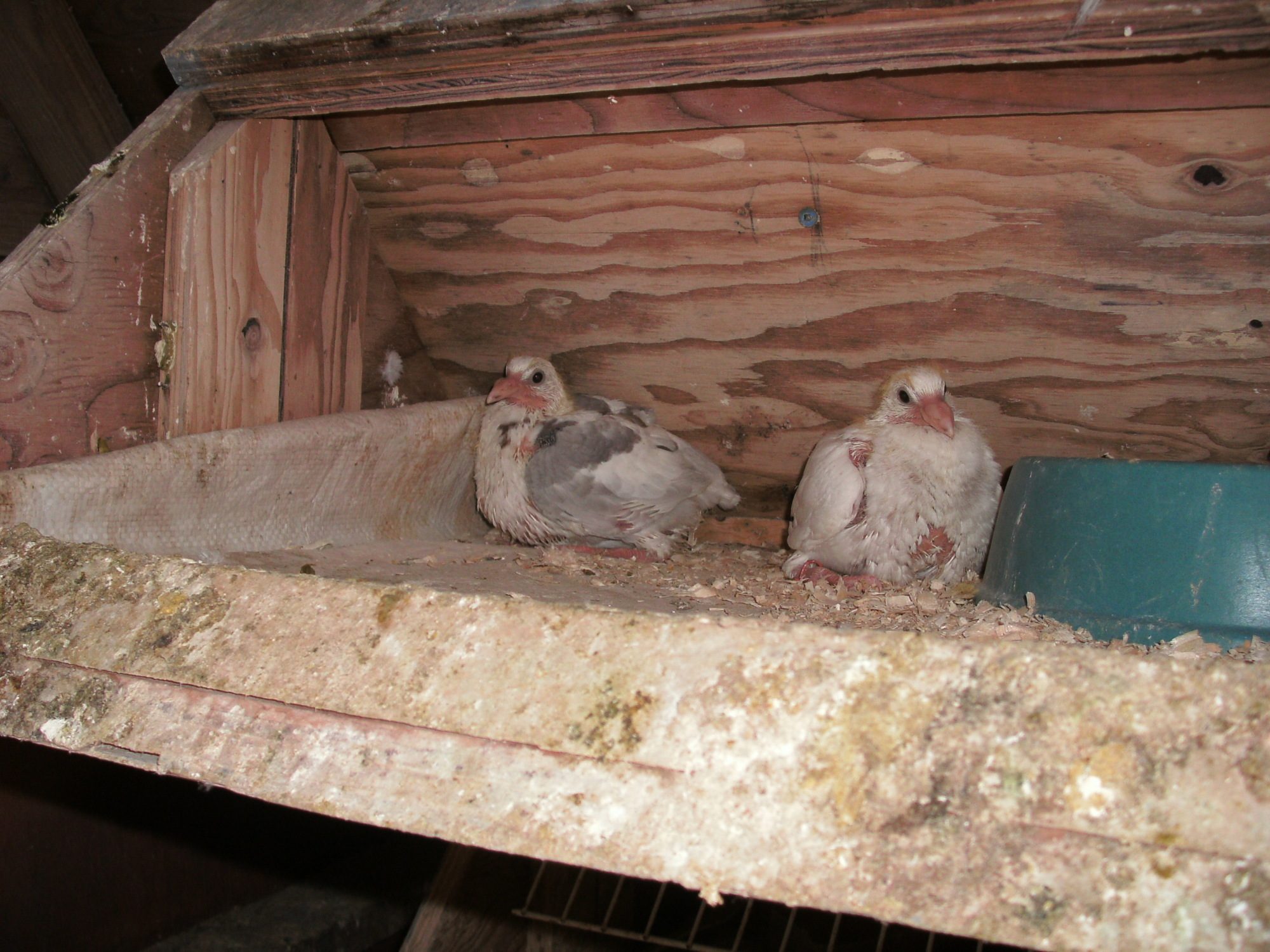 I have 2 squabs that are doing well now after first time parents lost their fist clutch of eggs. I have one solid white squab and another pied pigeon that has white and grey. I will post pictures once the colours are more absolute..