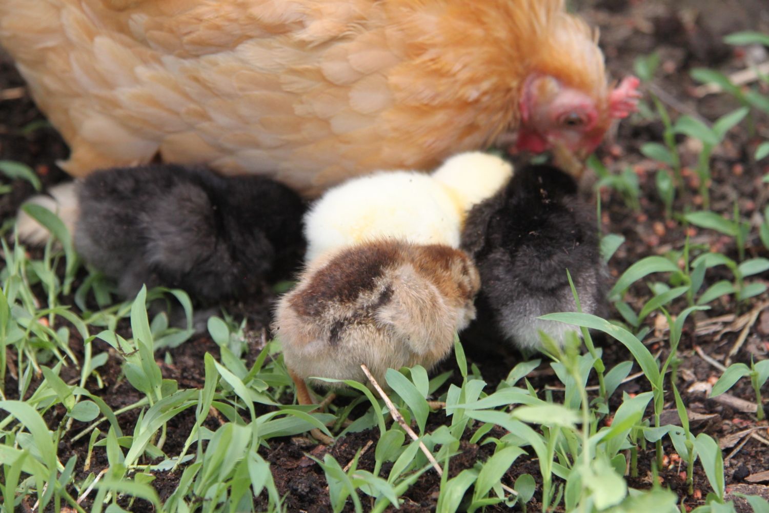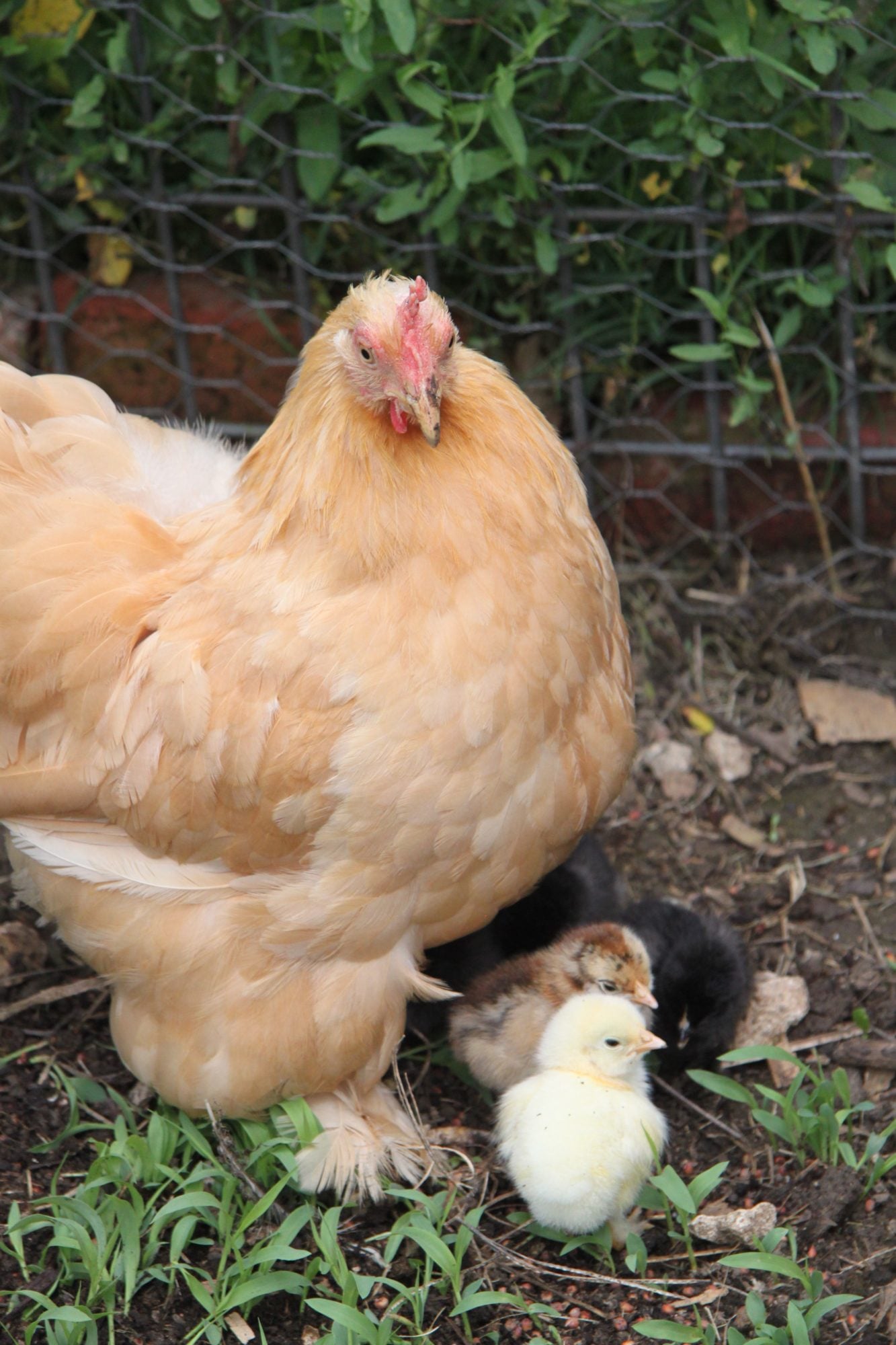 All five eggs under the broody hen hatched and are thriving. Of the 18 eggs that made it to lockdown, only 2 quit. All but two of the remaining eggs have hatched, with the last two latenicks taking their sweet time after pipping externally. Photos of the incubated chicks will be posted once they've all dried off, but here's some shots of Super Broody Anna and her crew.