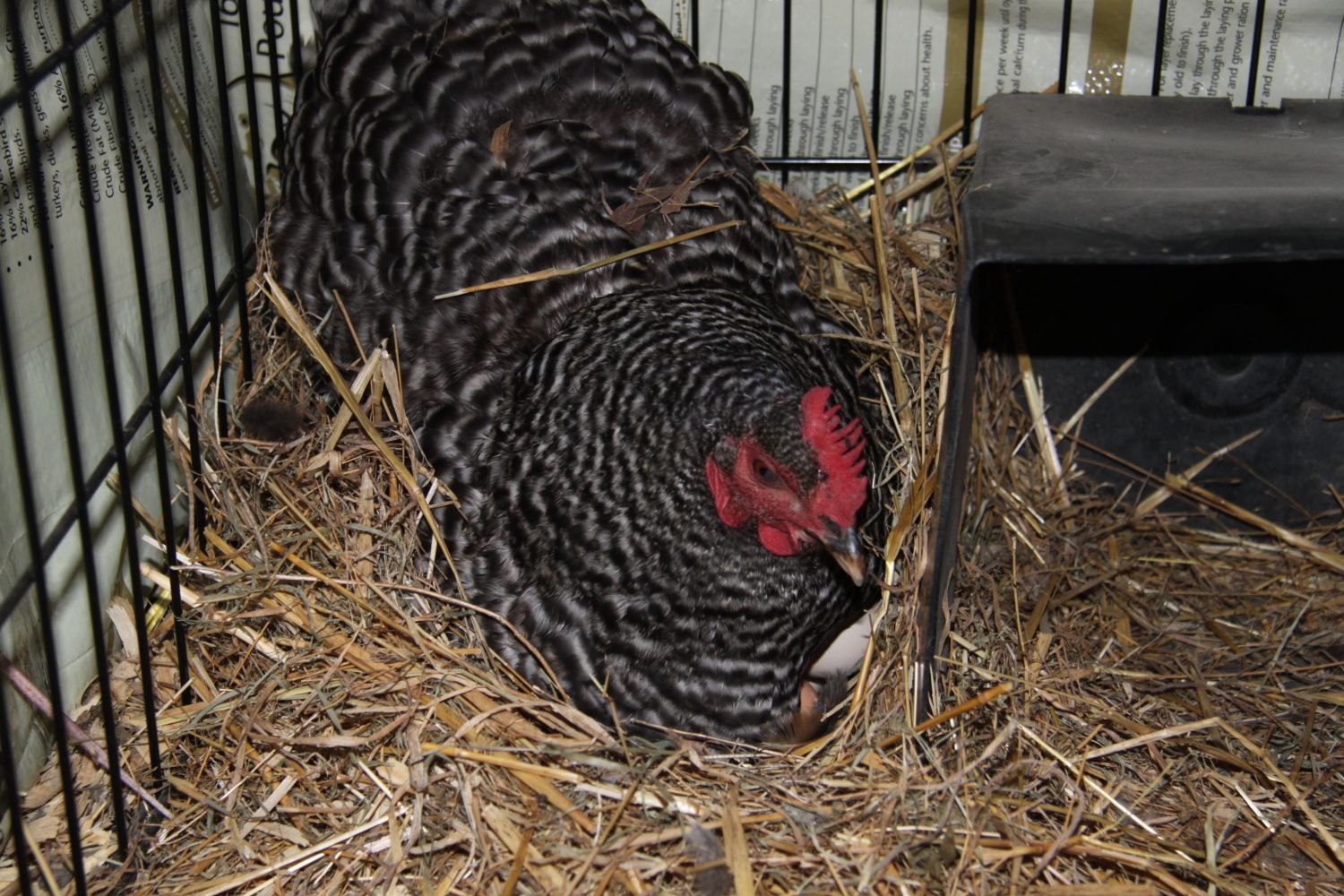 Much to our surprise, however, we had a newcomer to the broody game. Our Barred Rock hen Marjoram went broody this week, and unlike O'Brien, she was more than happy to be relocated to the broody cage. I gave her a large clutch of eggs, which--if all goes well--will hatch around the end of the month. There's another difference between Marj and the bantams besides her size and the ability to relocate her... Marjoram, as it turns out, is a BITER. Spoiled by Anna and O'Brien's sweet and calm nature during brooding, I was not prepared for the savage, velociraptor-esque chomps I got when I went to handle Marjoram!